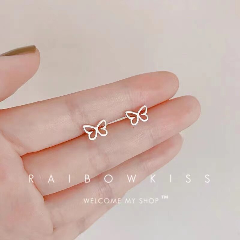 韩国防过敏925银小耳骨几何缕空素银蝴蝶耳钉耳饰百搭小耳环女