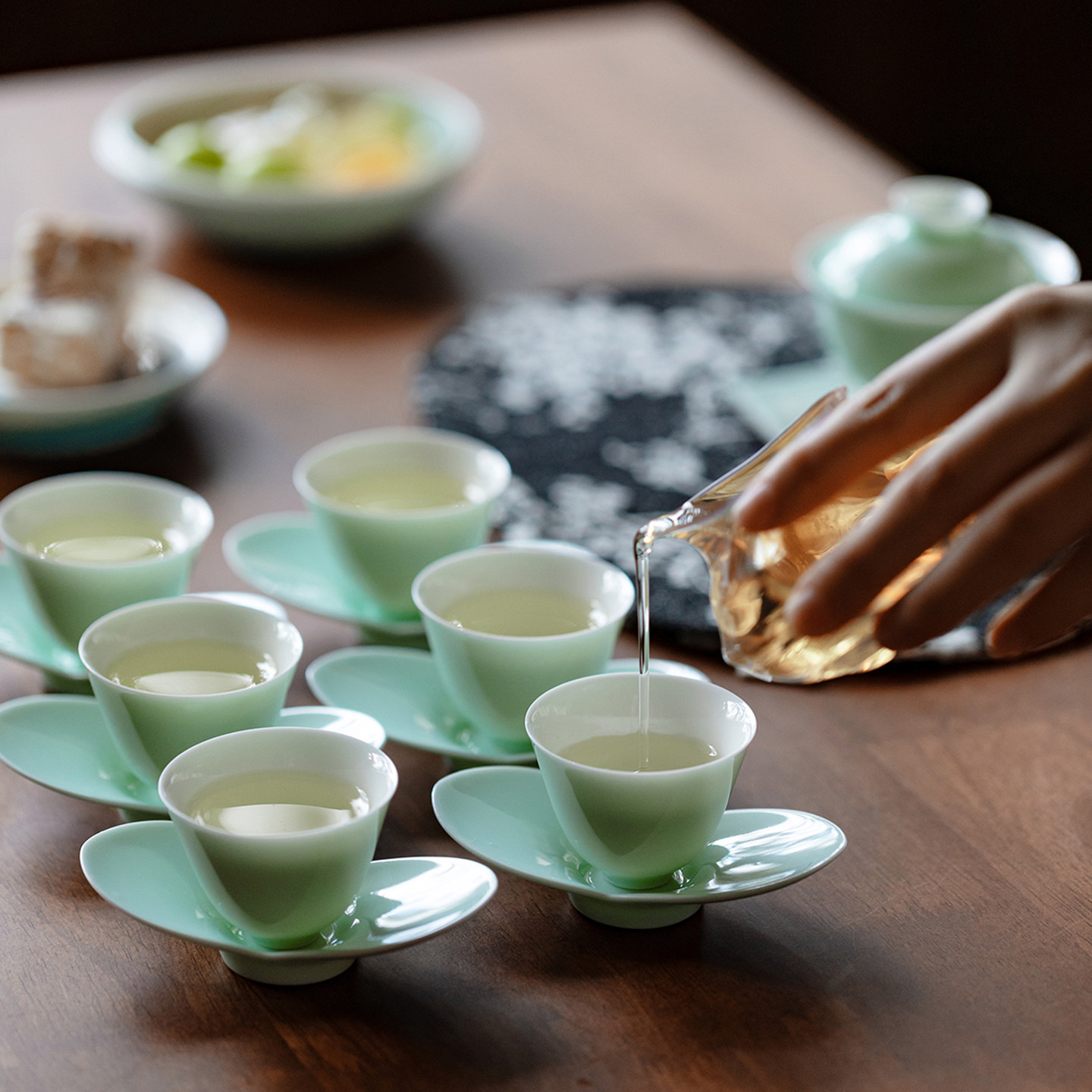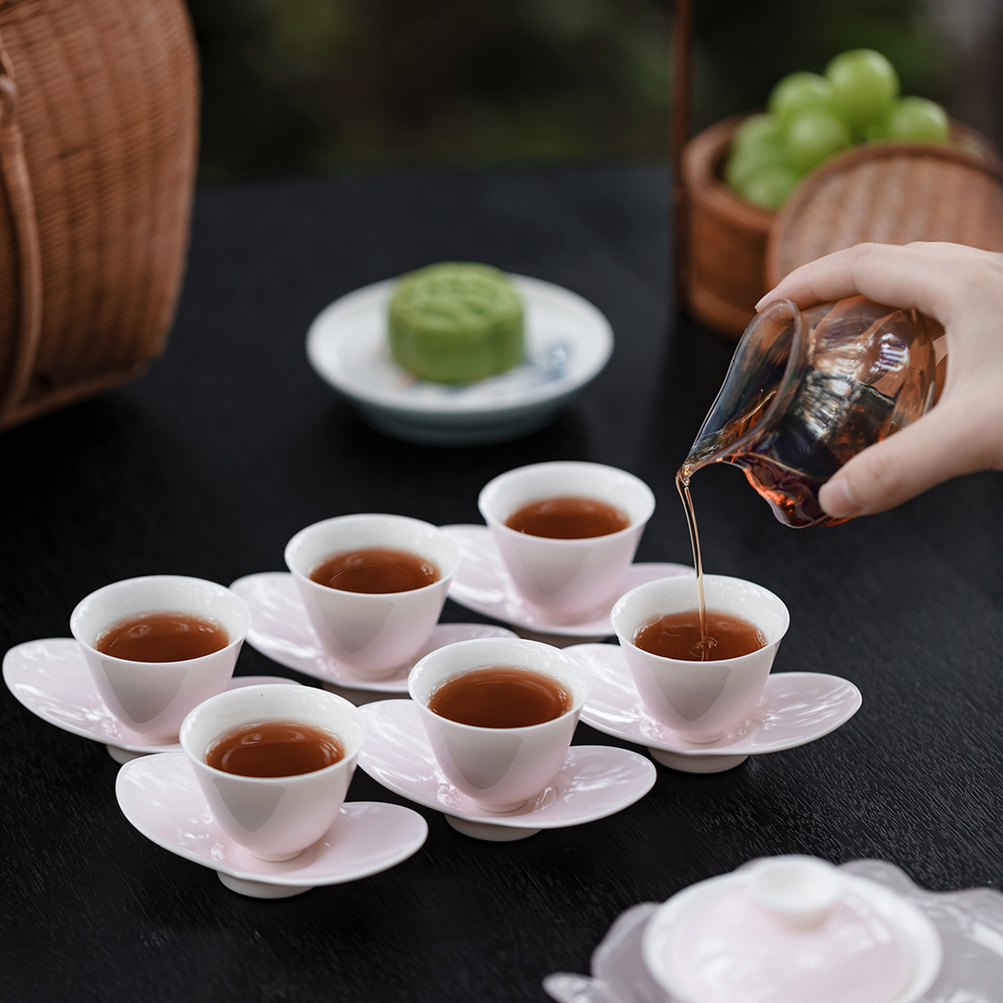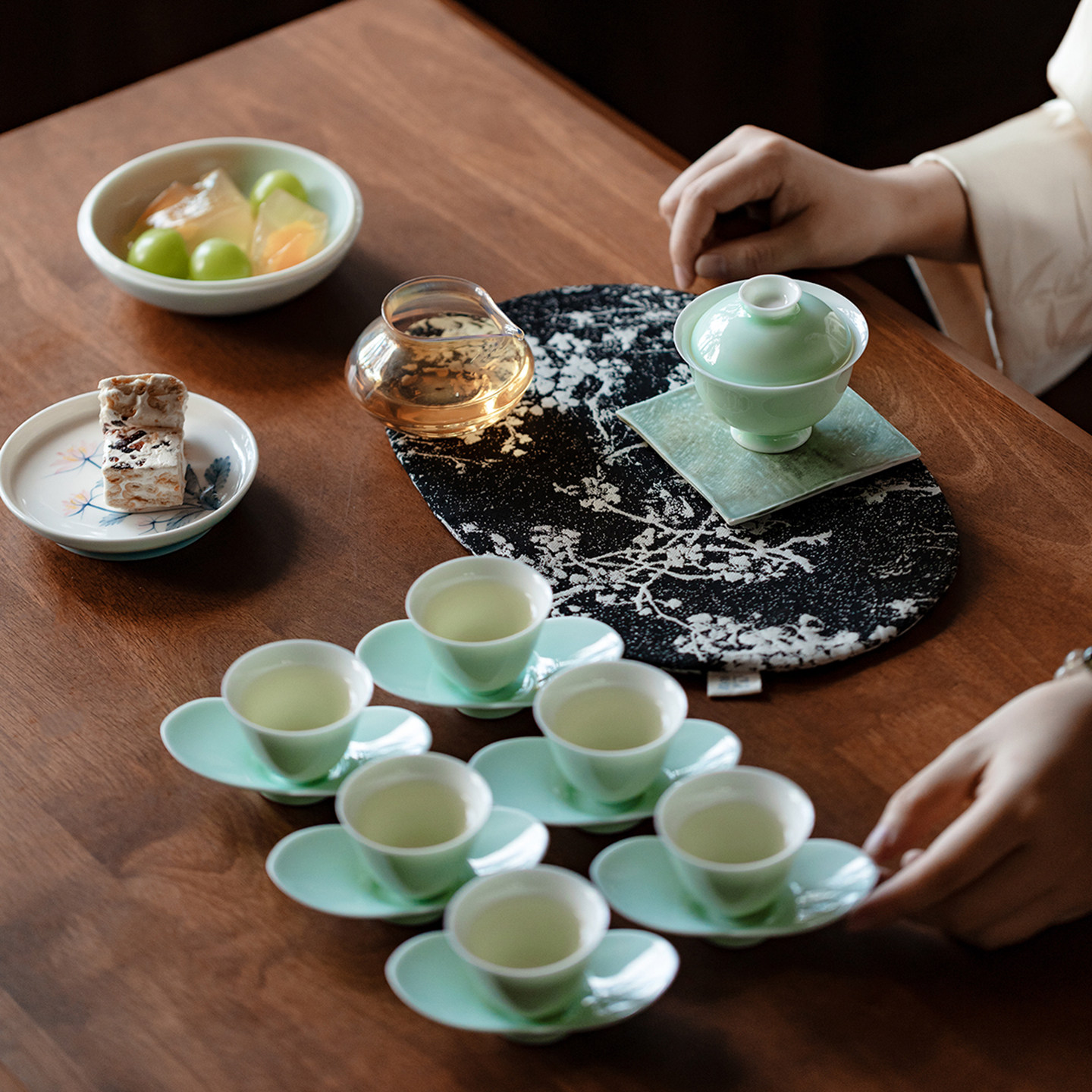 里作 小清新玉瓷薄胎盖碗套装精致茶杯杯垫小套组礼盒文创伴手礼