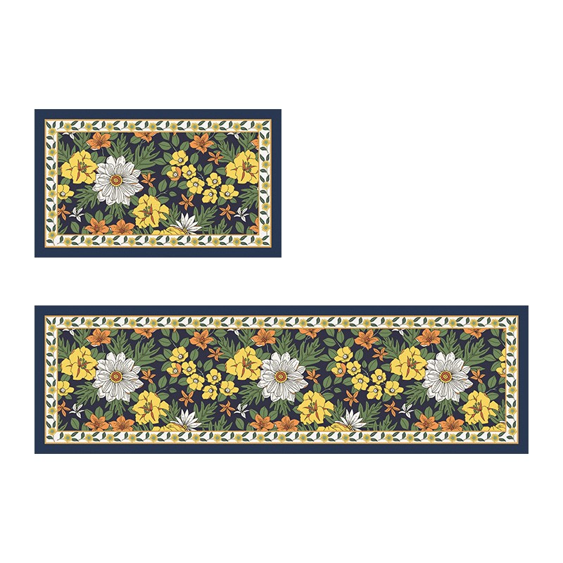美式花卉厨房地垫 pvc皮革防滑防油可擦免洗垫子防水长条厨房地毯