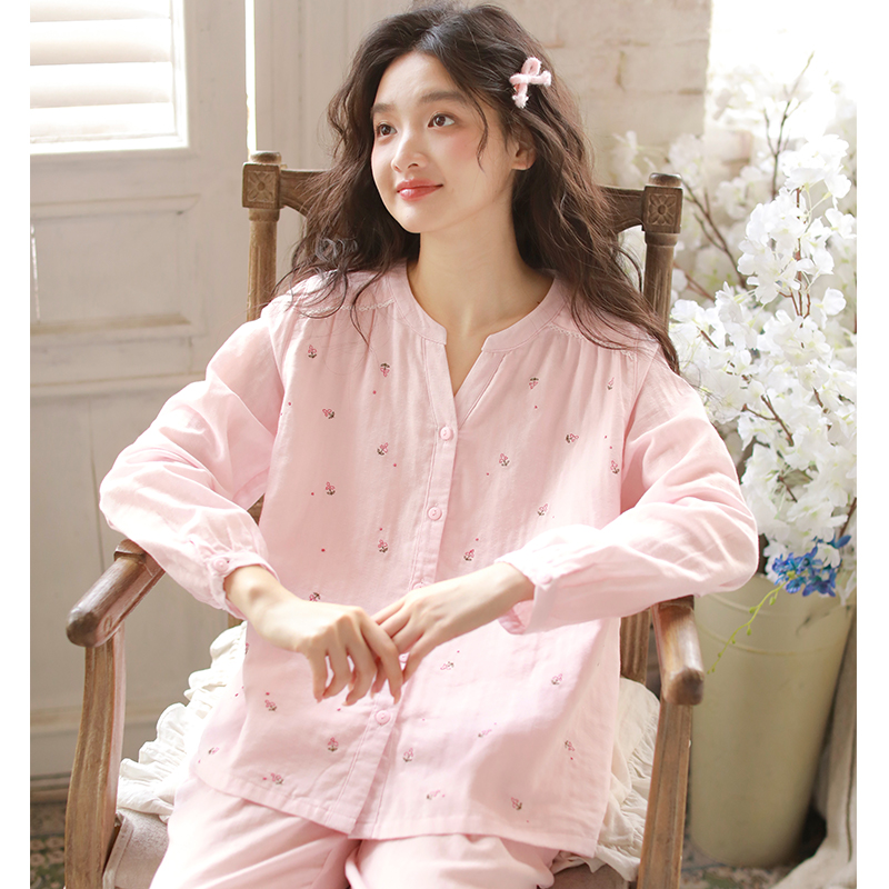 2025新款纯棉双层纱布春夏女士睡衣甜美长袖长裤空调服家居服套装
