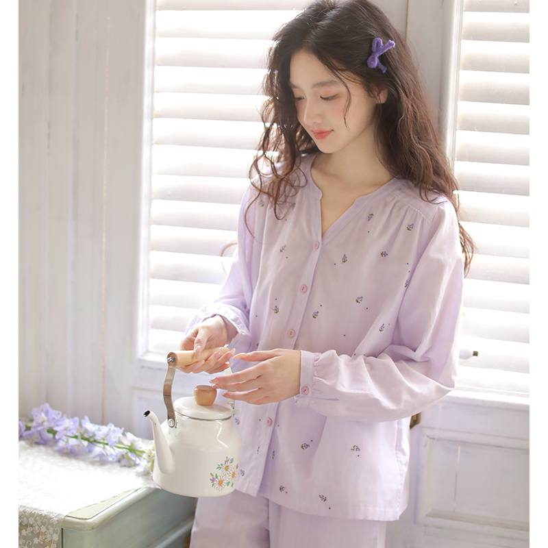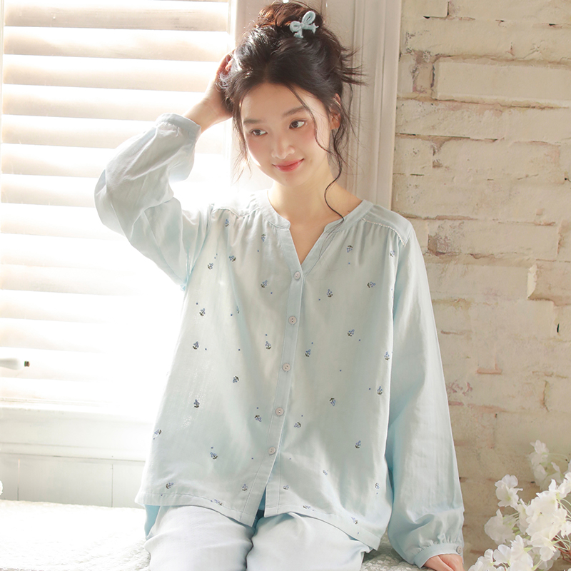 双层纱布春夏女士睡衣长袖空调服