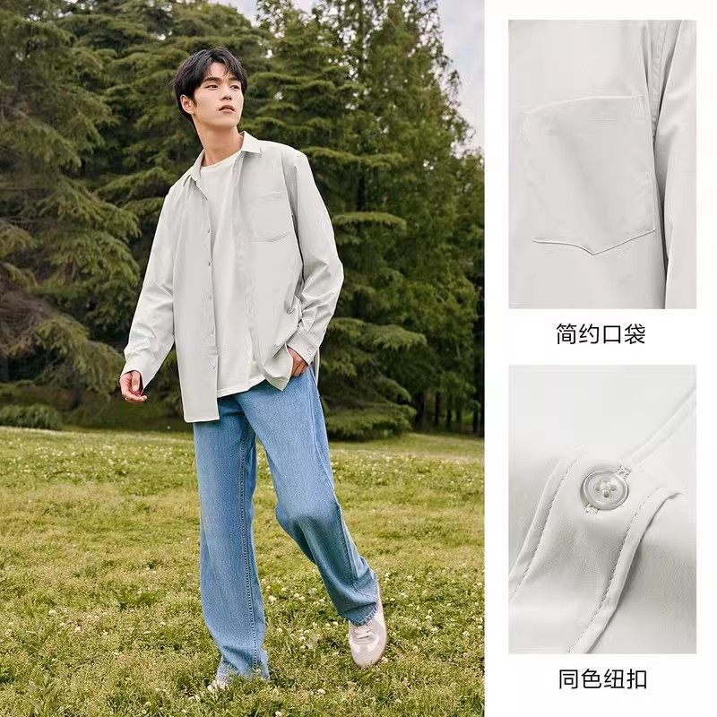 森马长袖衬衫男2024秋季新款男士宽松蓝色翻领纯白色衬衣外套春秋