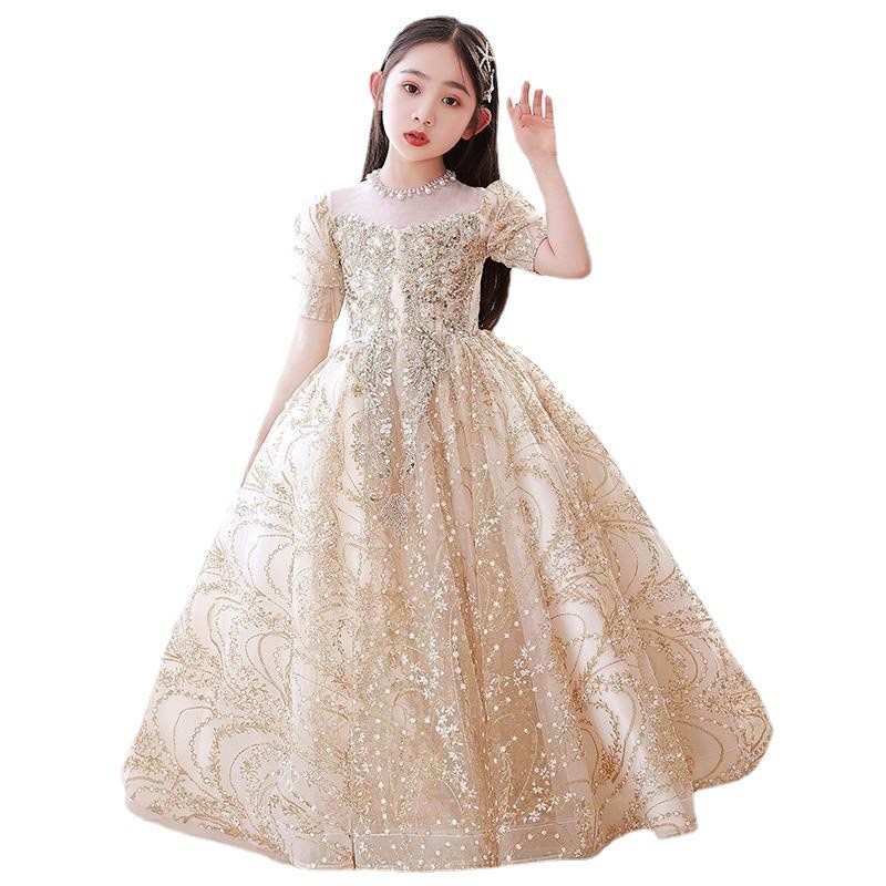 中大童礼服公主裙花童大码香槟色主持人钢琴蓬蓬纱裙女孩学生演出