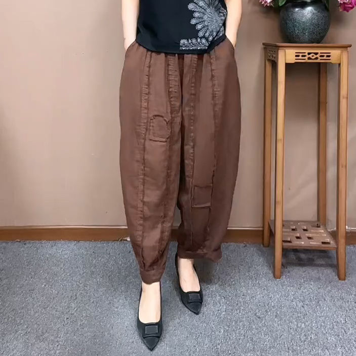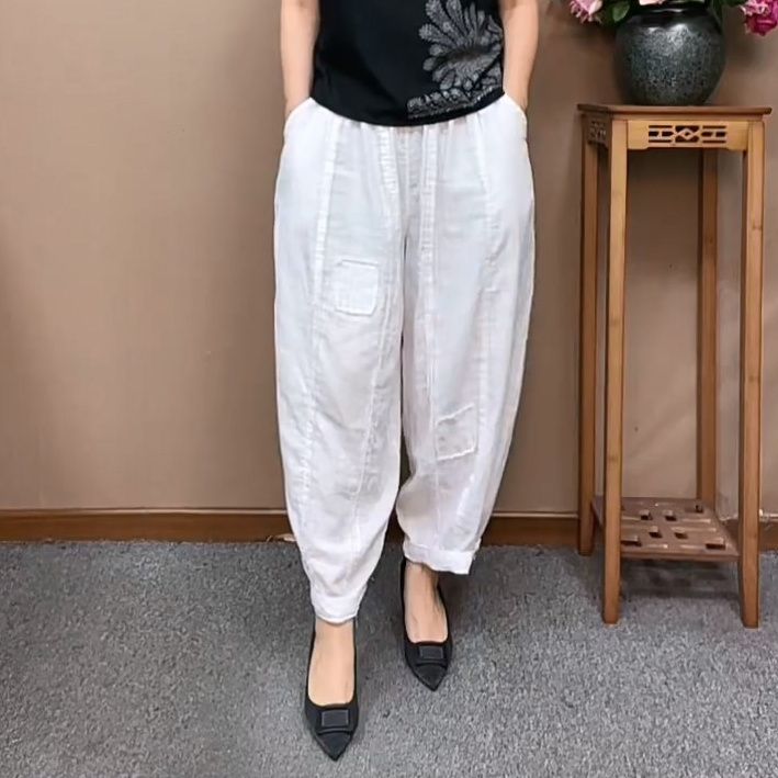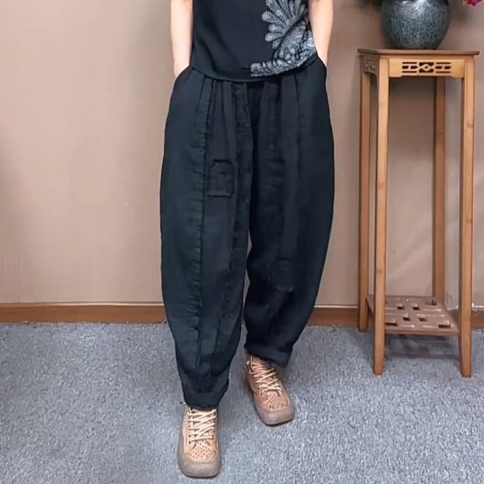 毛边设计复古棉纱宽松哈伦裤女春夏季松紧高腰显瘦百搭休闲长裤子