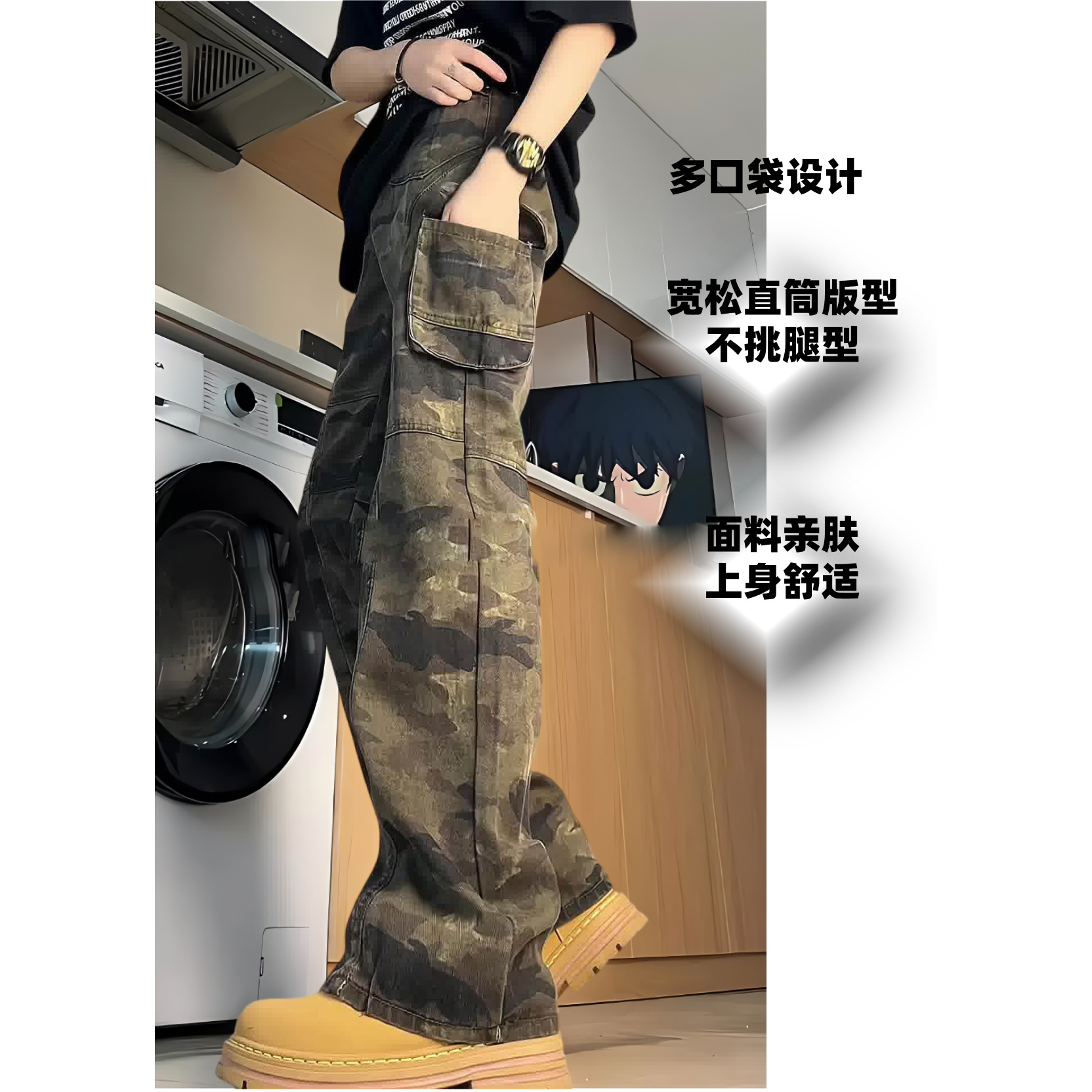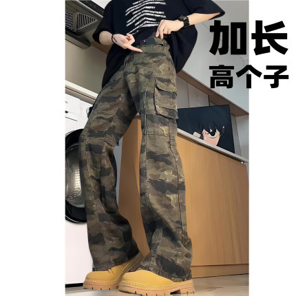 美式复古迷彩工装裤男夏季115休闲阔腿长裤百搭直筒裤高个子190
