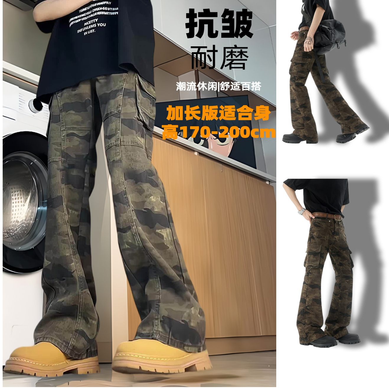 美式复古迷彩工装裤男夏季高个子