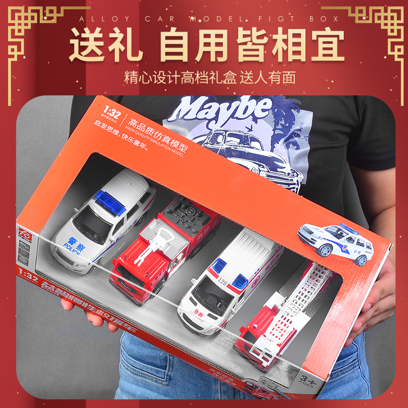 儿童警车消防车救护车礼盒套装交通工具仿真汽车模型男女孩玩具车