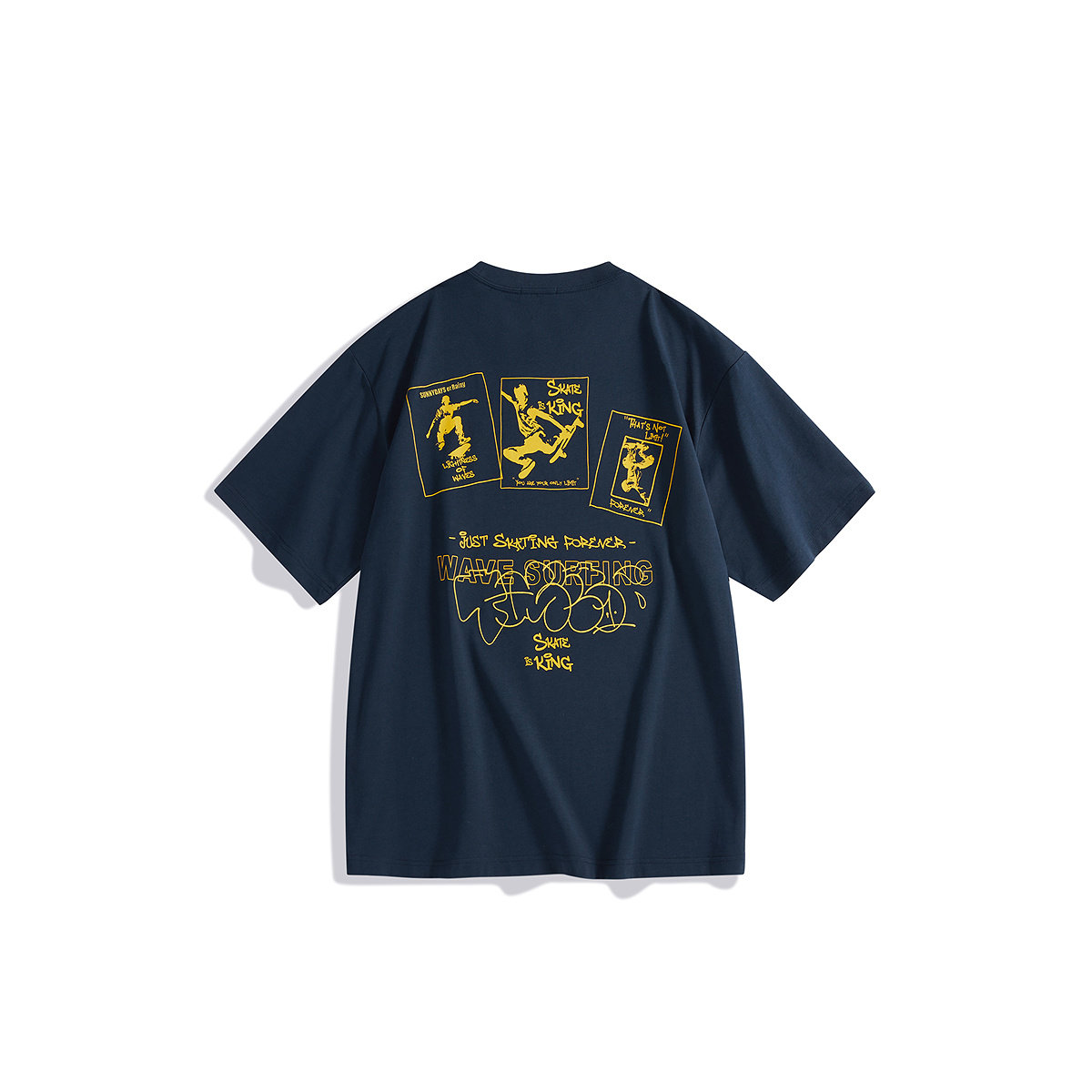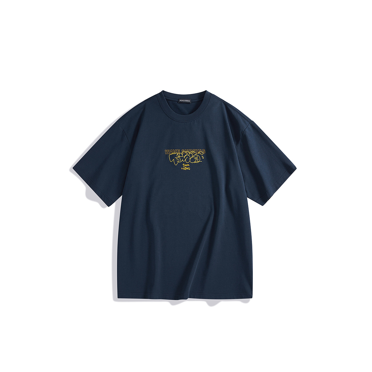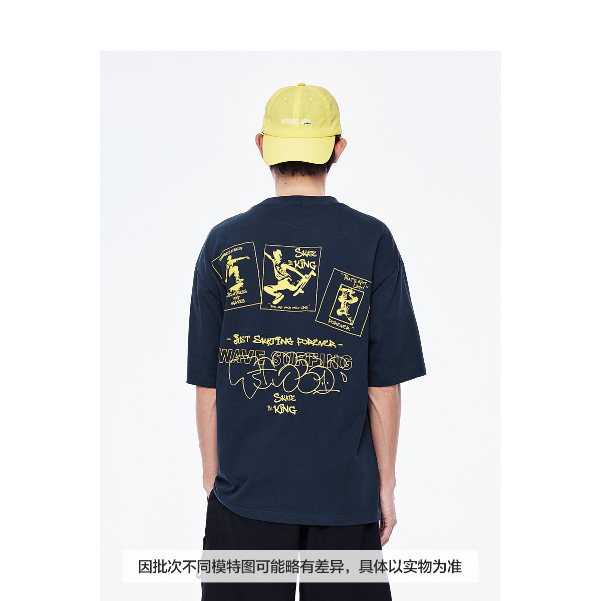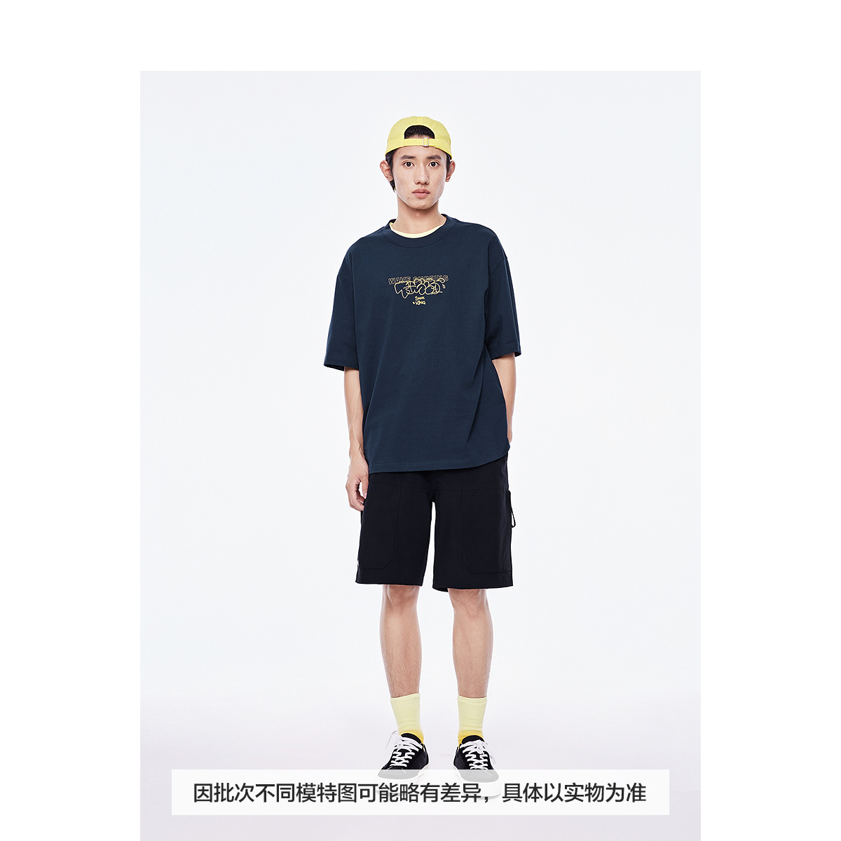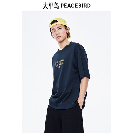 太平鸟男装夏季重磅休闲短袖T恤宽松阔版字母运动撞色潮牌上衣