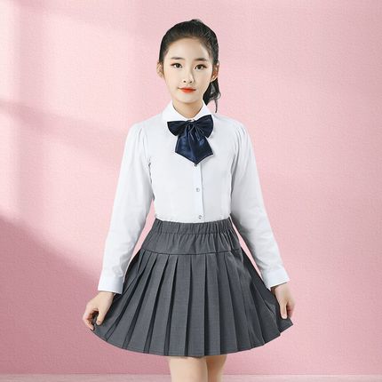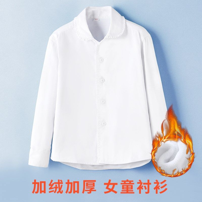 儿童白衬衫女童纯棉长袖冬季加绒加厚保暖中大童学生校服白色衬衣