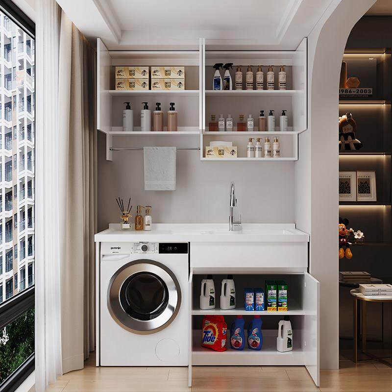 不锈钢蜂窝铝洗衣柜阳台一体台盆洗衣机柜组合浴室柜洗衣池带搓板