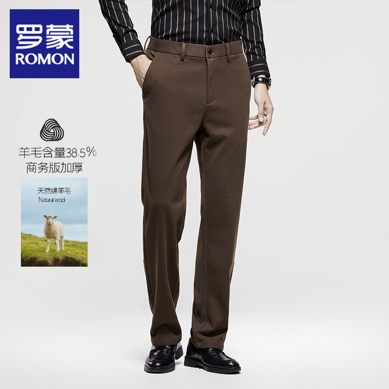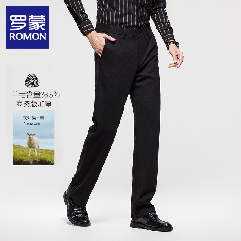 罗蒙含羊毛休闲裤男2024秋冬季新款商务休闲加厚西裤中年爸爸裤子