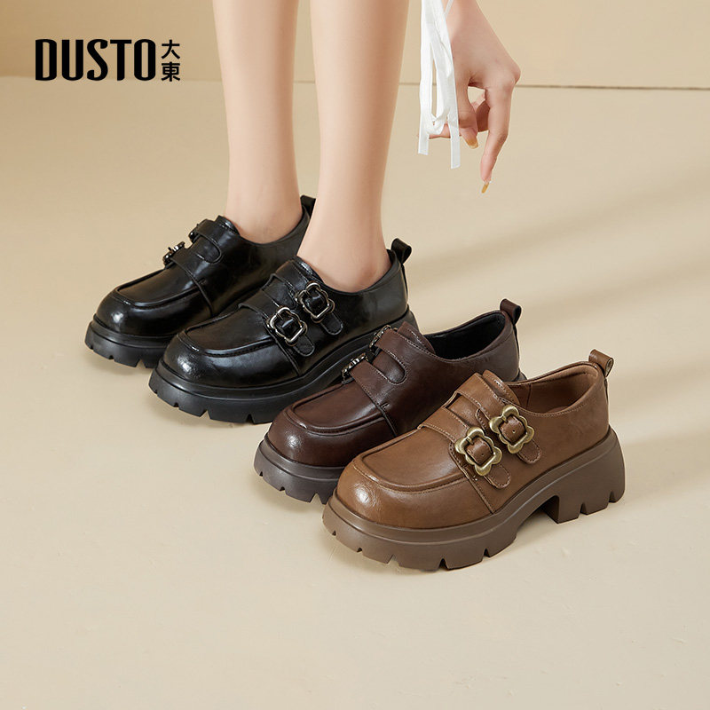 大东女鞋2026春季新款英伦风软底舒适乐福鞋简约复古增高小皮鞋女