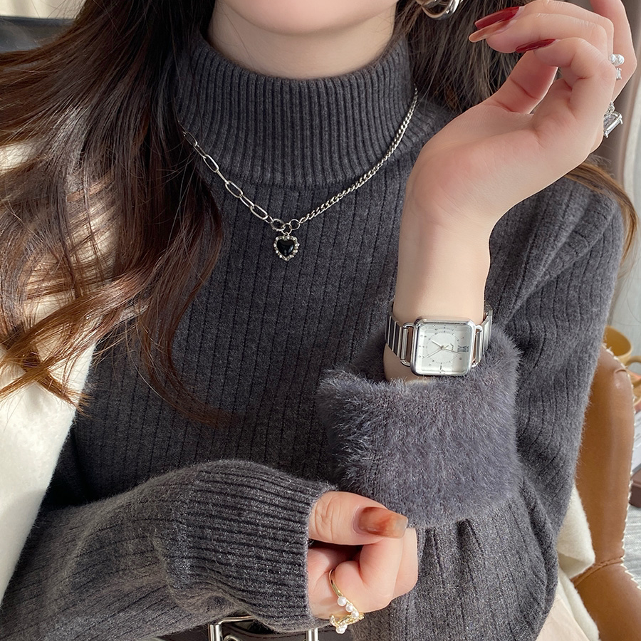 加绒毛衣女加厚秋冬内搭一体绒东北冬季半高领打底衫白色保暖上衣