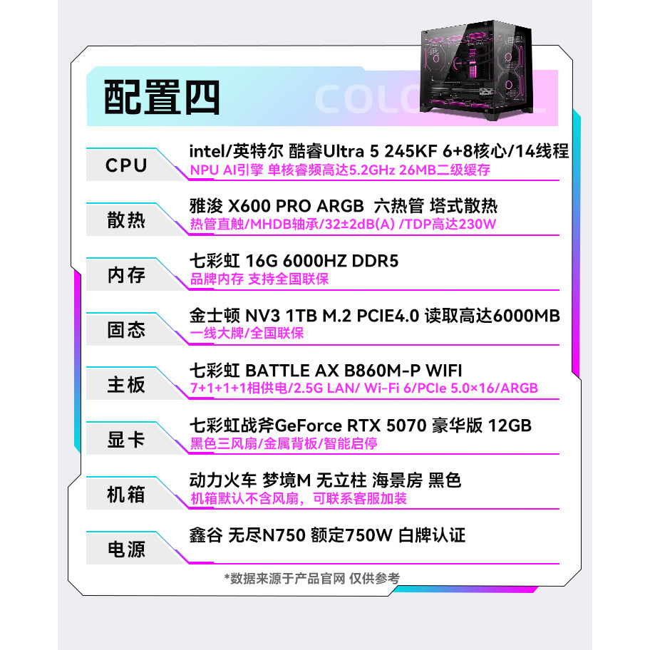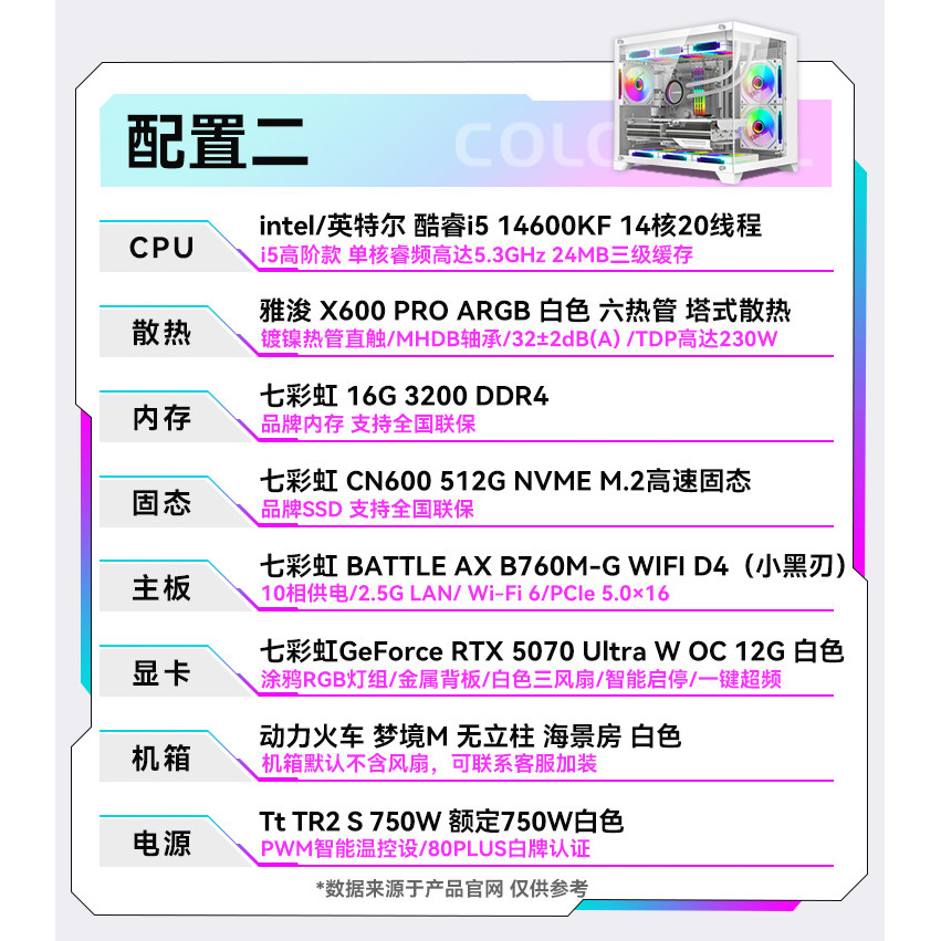 七彩虹 酷睿I5-14600KF RTX5070 245KF 游戏电脑DIY主机组装台式机电脑整机独显主机网吧网咖电竞吃鸡三角洲