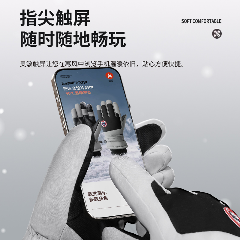 男士保暖手套冬季骑行电动摩托车防风防寒防水滑雪加绒厚棉触屏女