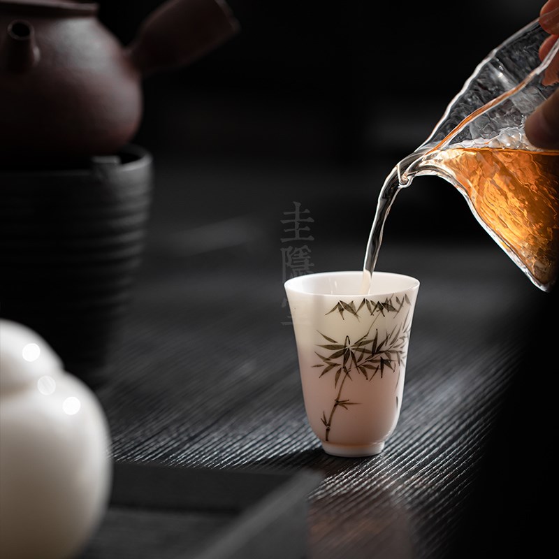圭隐堂纯手绘竹子陶瓷功夫茶杯家用复古白瓷主人杯品茗杯个人单杯