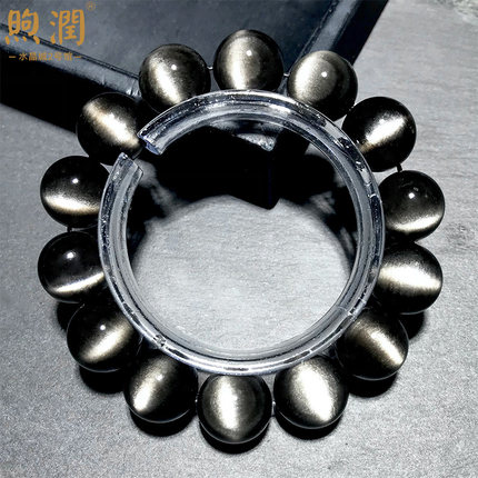 收藏级天然银曜石手链双猫眼圆眼黑曜石本命年男女款猫眼石水晶