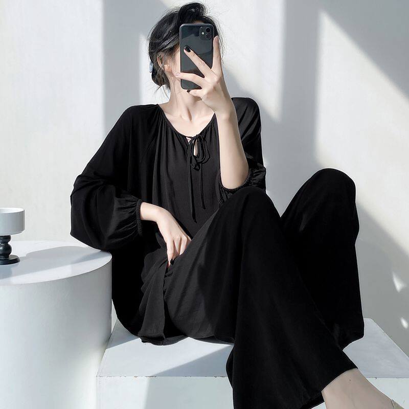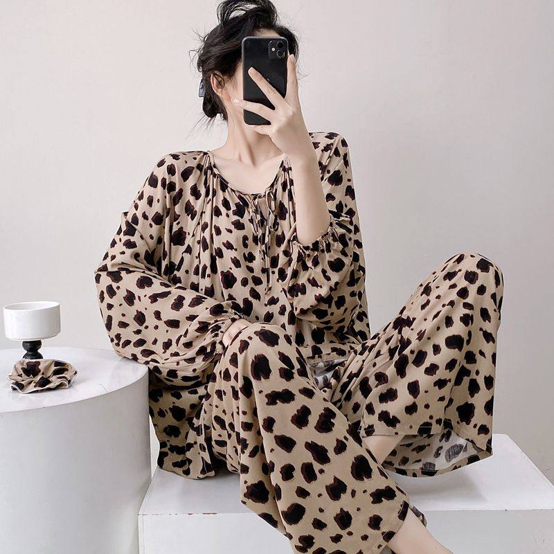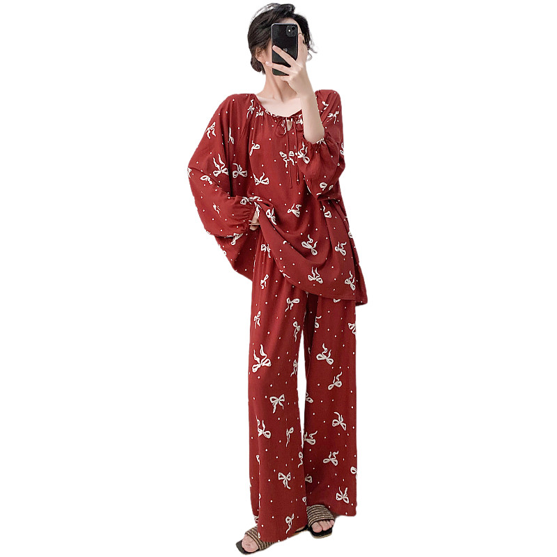 2025新款睡衣女春夏季棉绸长袖国风气质甜美蝴蝶结家居服绵绸套装