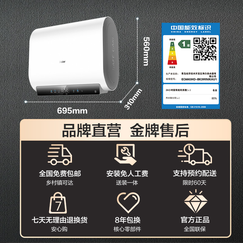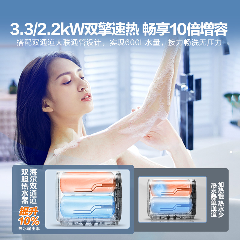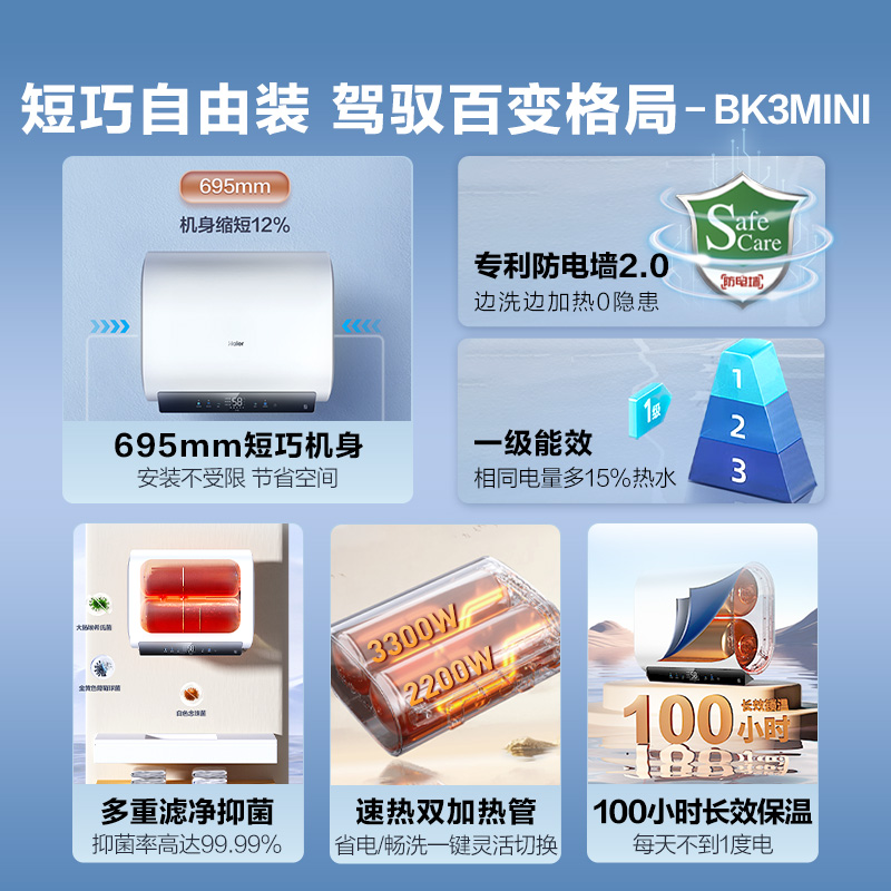 海尔一级能效双胆电热水器免换镁棒家用卫生间洗澡60升BK3MINI