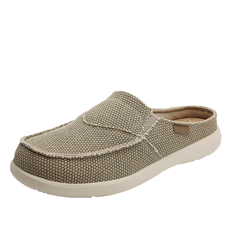 夏季亚麻拖鞋男大码46一脚蹬懒人布拖办公室休闲包头帆布凉拖47码