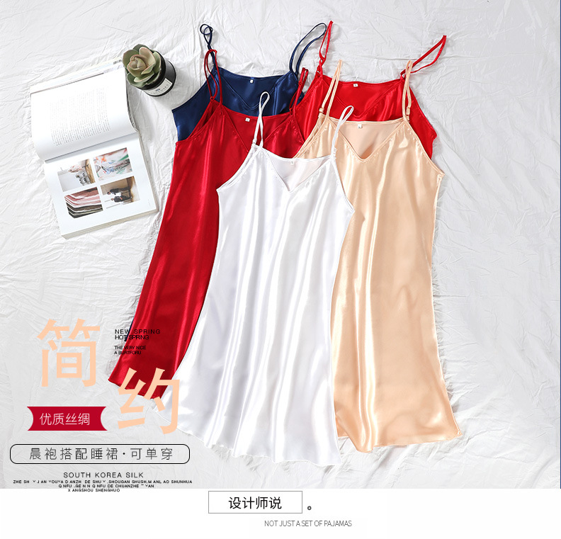 红色新娘晨袍搭配打底裙色丁仿真丝睡衣女冰丝香槟色伴娘吊带睡裙