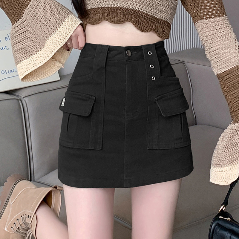 辣妹牛仔短裙女2023秋冬小个子防走光裙裤显瘦高腰a字半身包臀裙