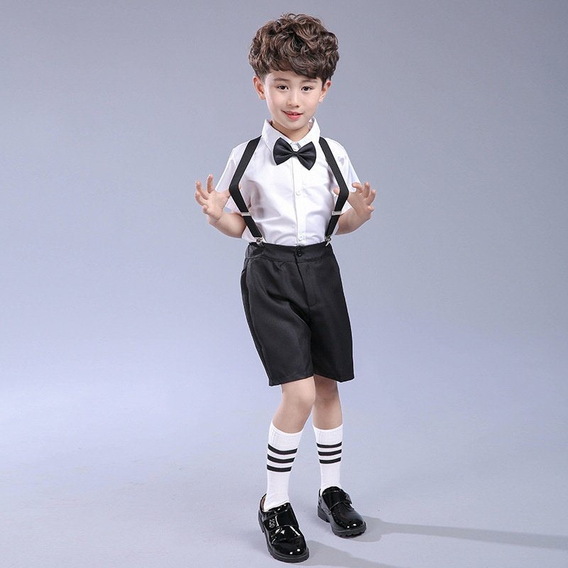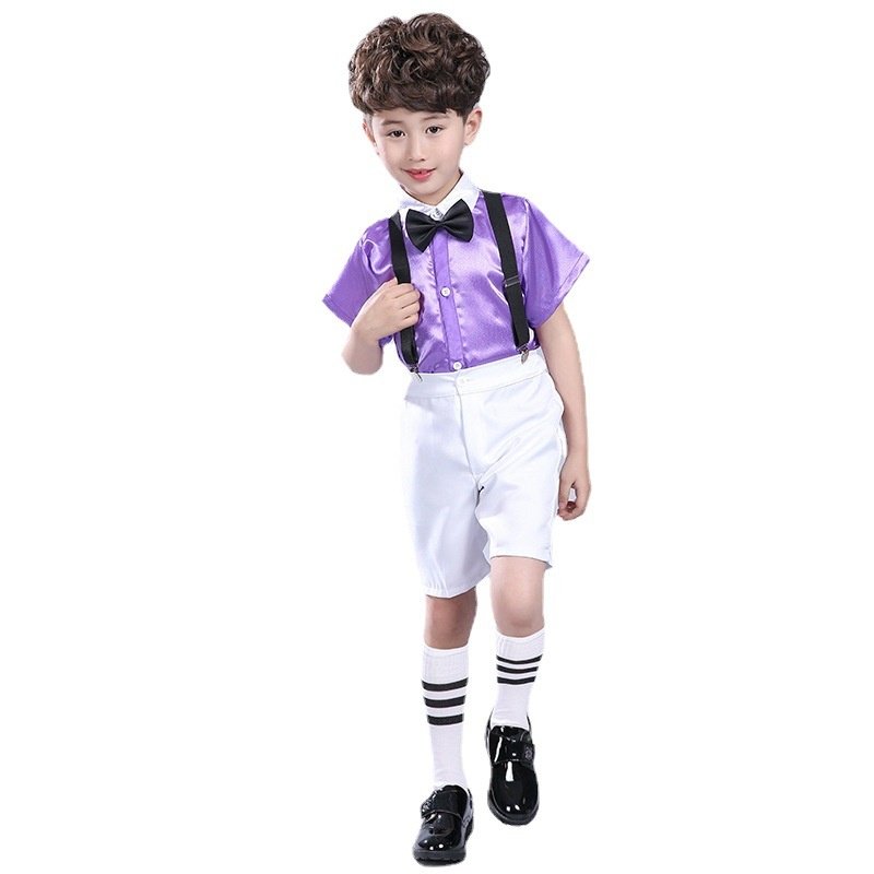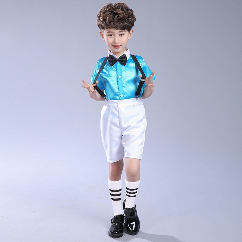 六一儿童大合唱演出服男童背带裤亮片礼服套装幼儿诗歌朗诵表演服