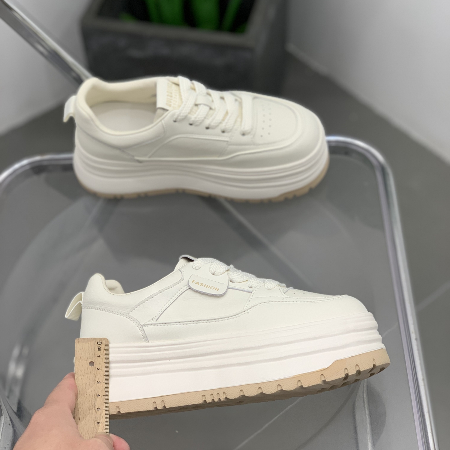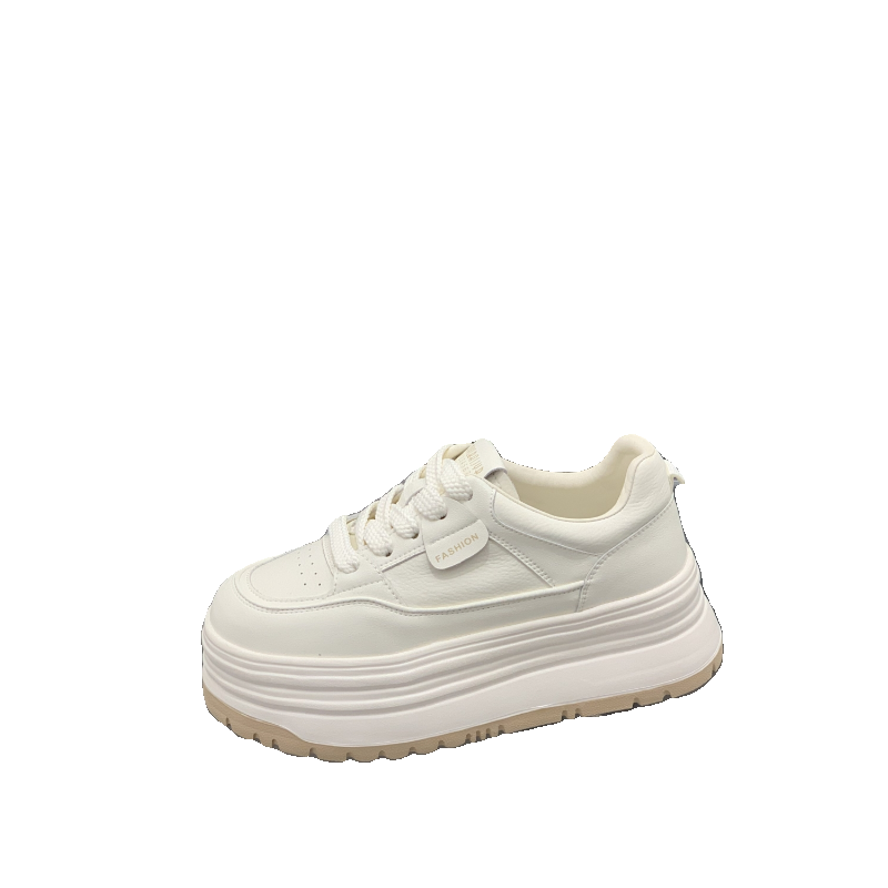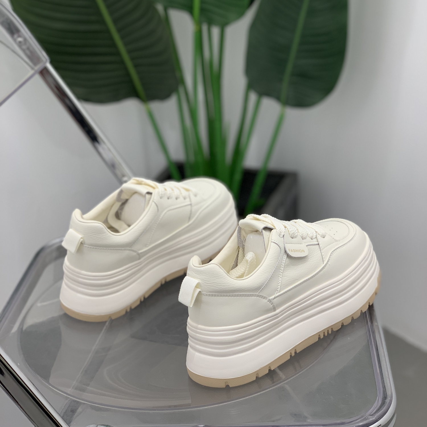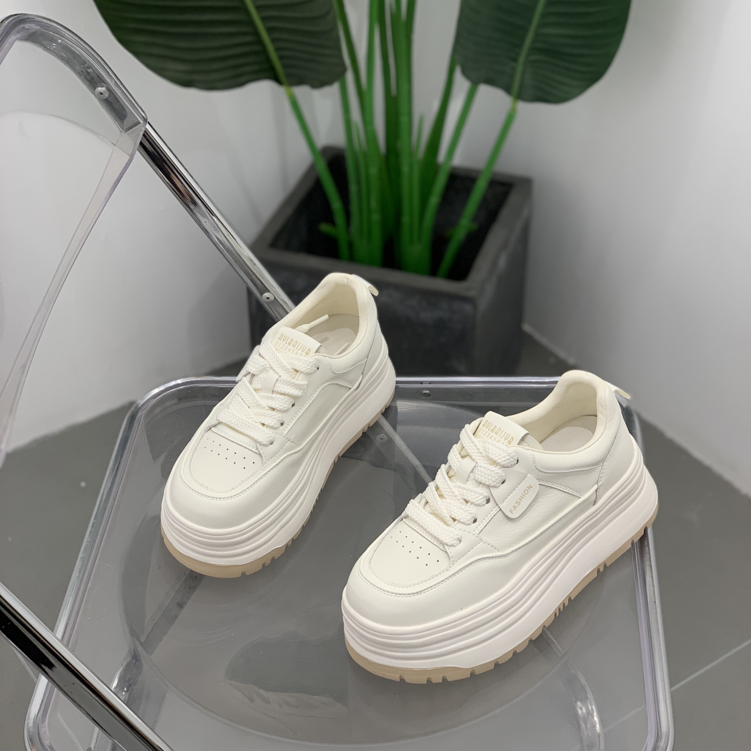 真皮厚底轻便小白鞋女百搭2025秋季新款小个子增高休闲系带板鞋女