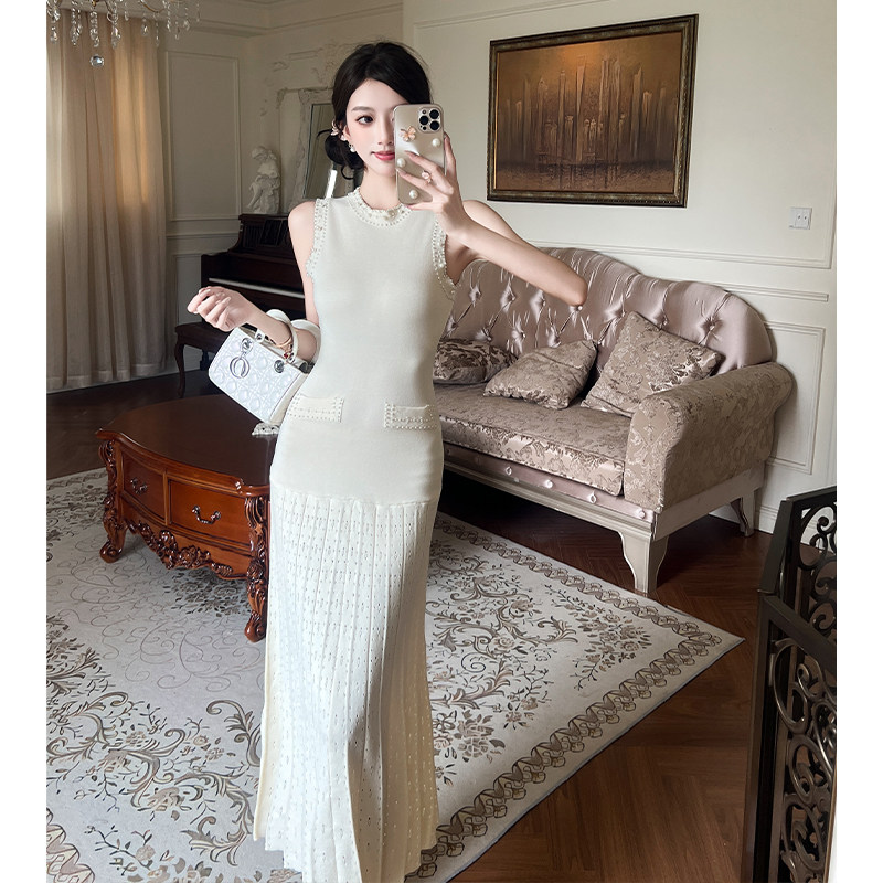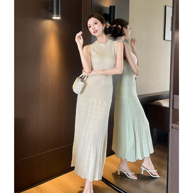 适合150cm小个子春装显高加小码女装重工钉珠背心收腰针织连衣裙