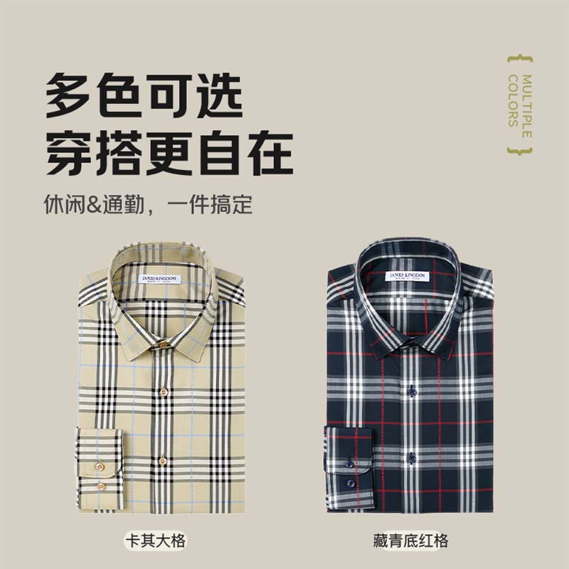 James Kingdom秋冬新款男士衬衣时尚商务休闲免烫格子长袖衬衫