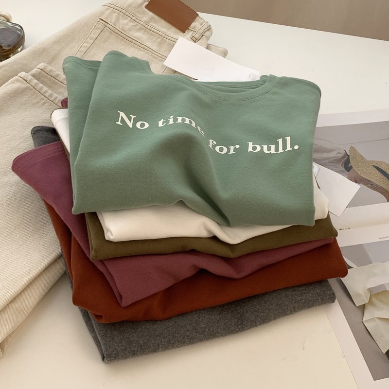韩版字母印花圆领短袖t恤女宽松显瘦加厚磨毛打底衫上衣秋冬新款