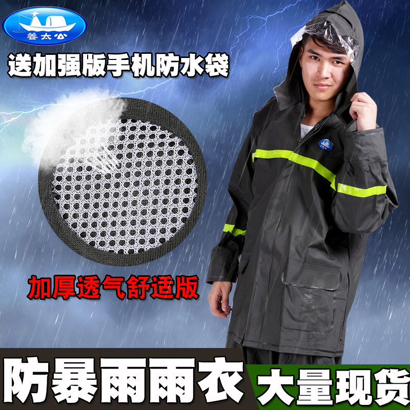 加厚姜太公雨衣雨裤套装劳保骑行外卖快递骑手防暴雨透气反光雨衣