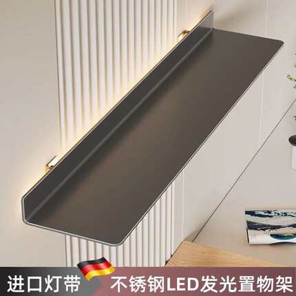 不锈钢一字板置物架墙上壁挂免打孔层板收纳架书架展示架壁挂式