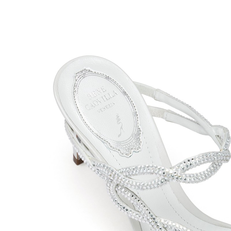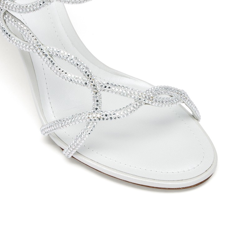 【秋冬新品】RENE CAOVILLA BRAID系列白色水钻女士高跟凉鞋