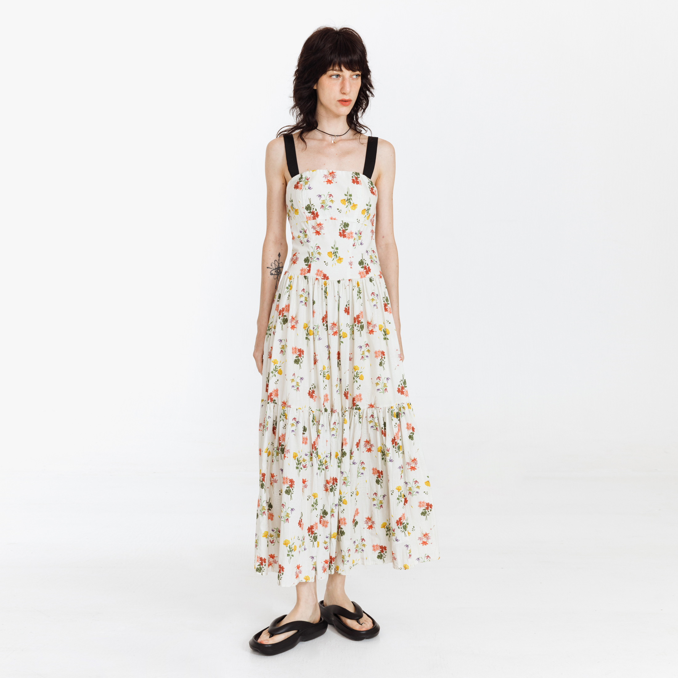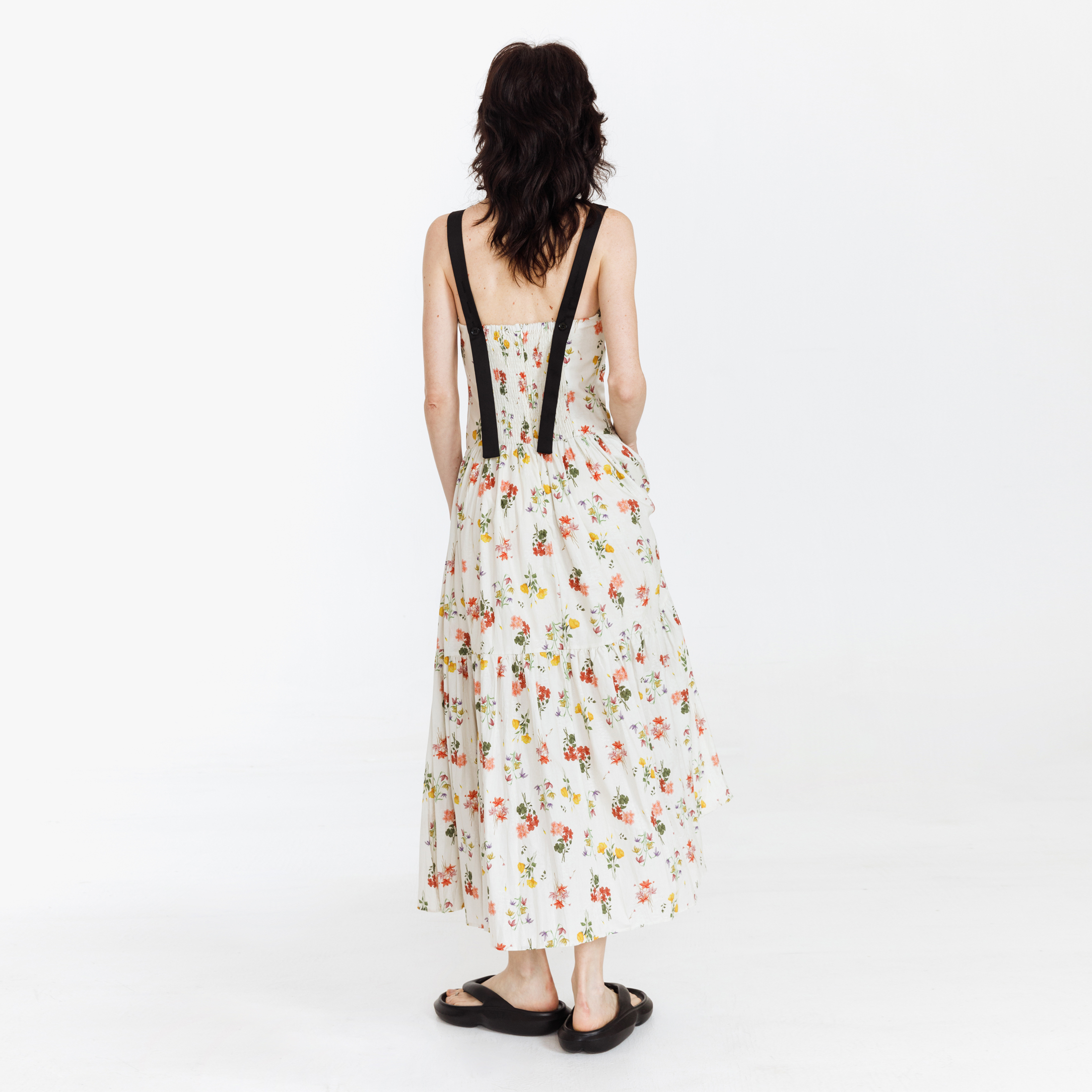 【明星同款】CUBIC浪漫碎花收腰背带连衣裙宽肩带褶皱吊带长裙