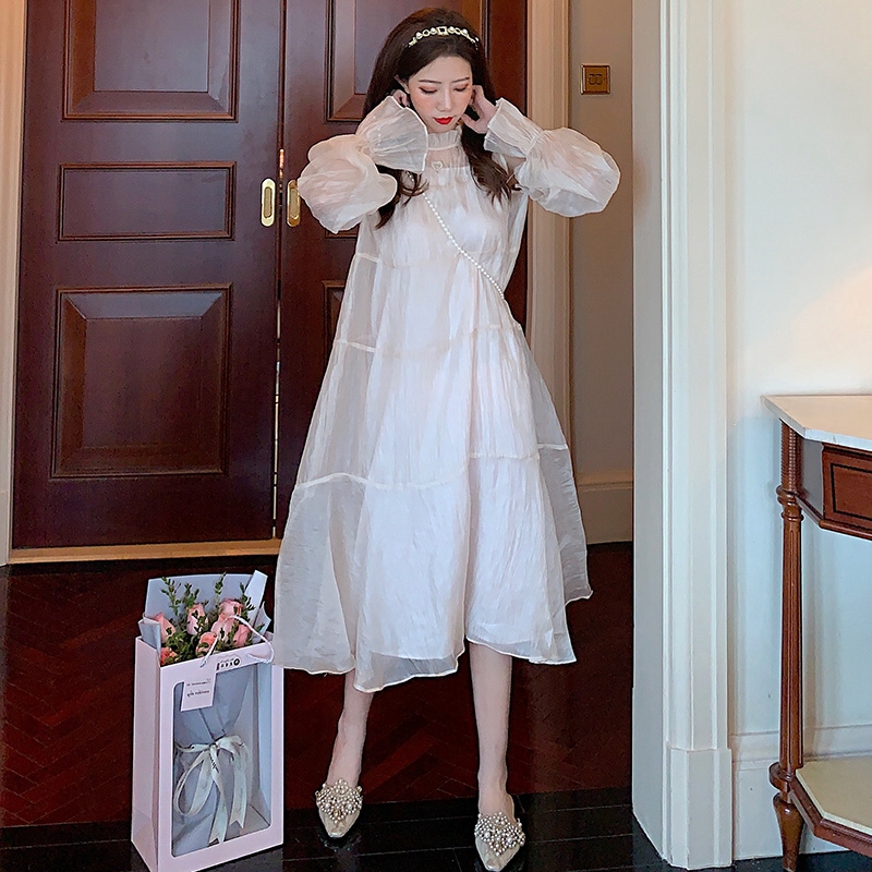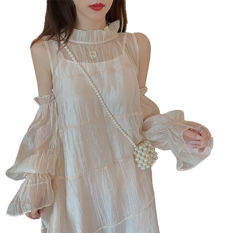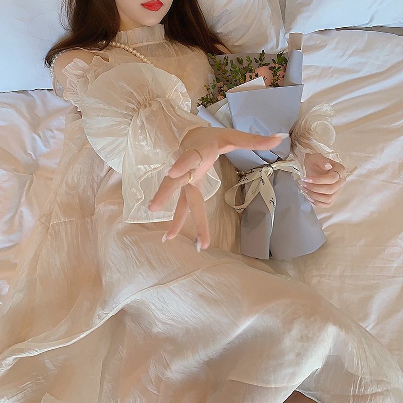 大码女装夏季设计感露肩网纱裙a字蓬蓬裙甜美百搭长裙仙女连衣裙