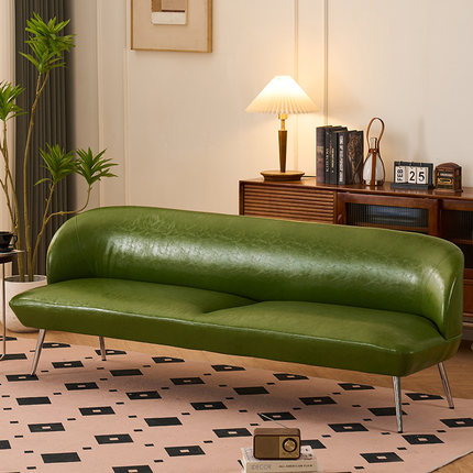 沙发小户型客厅复古绿色皮艺卧室接待服装店超窄版双人小型小沙发
