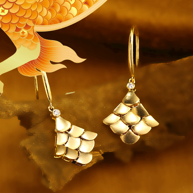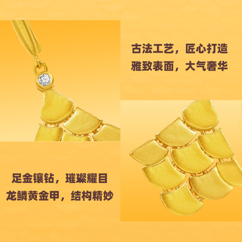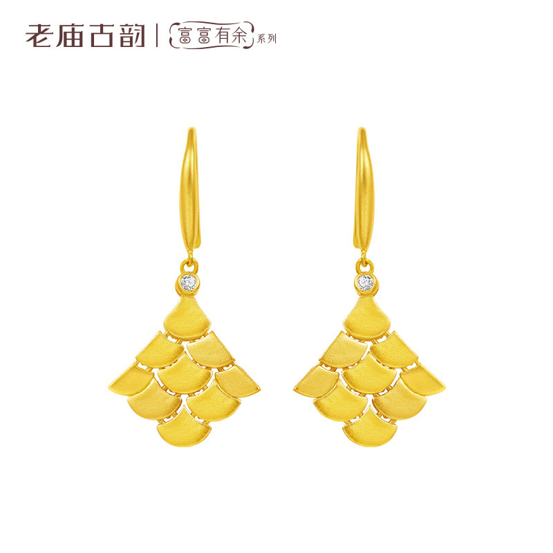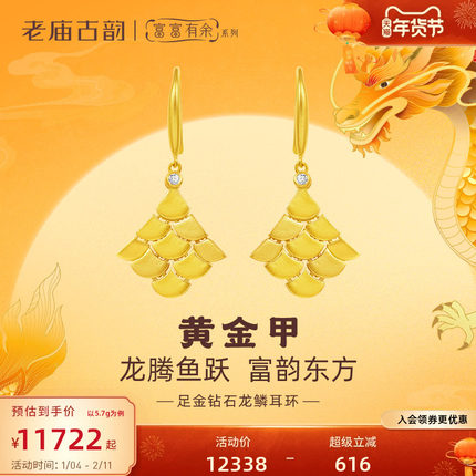 老庙黄金足金999钻石古法富富有余龙鳞耳环耳钩扇形鳞片黄金甲