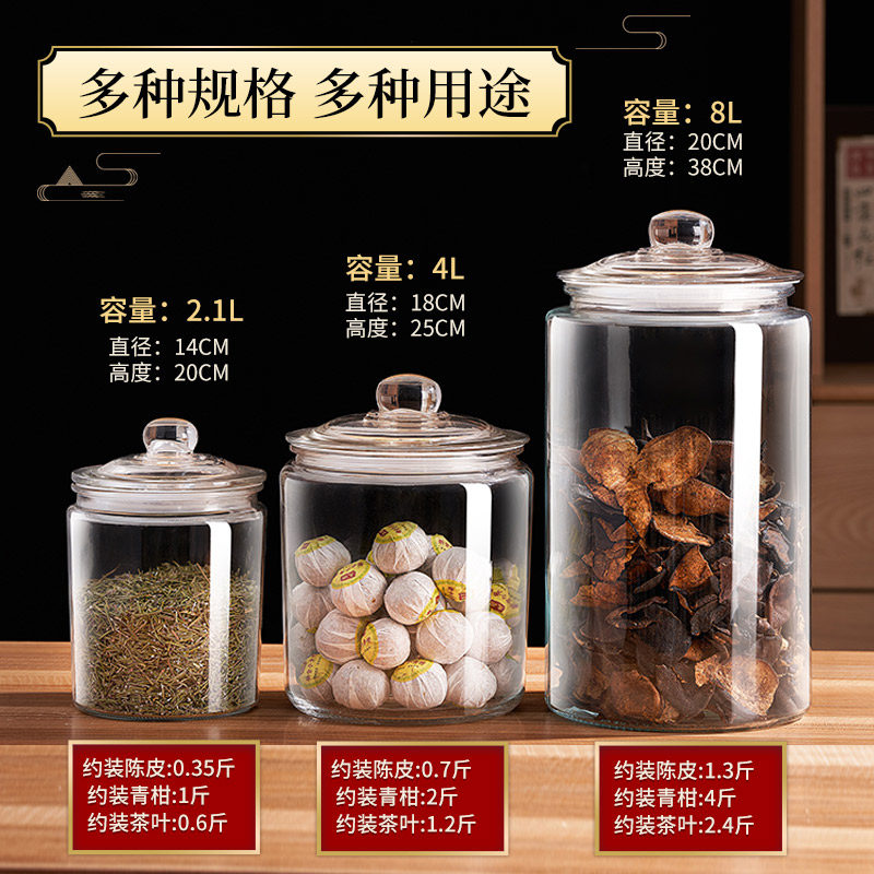 新会陈皮储存罐专用玻璃罐密封瓶装食品级鱼胶花胶干货中药储存罐