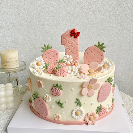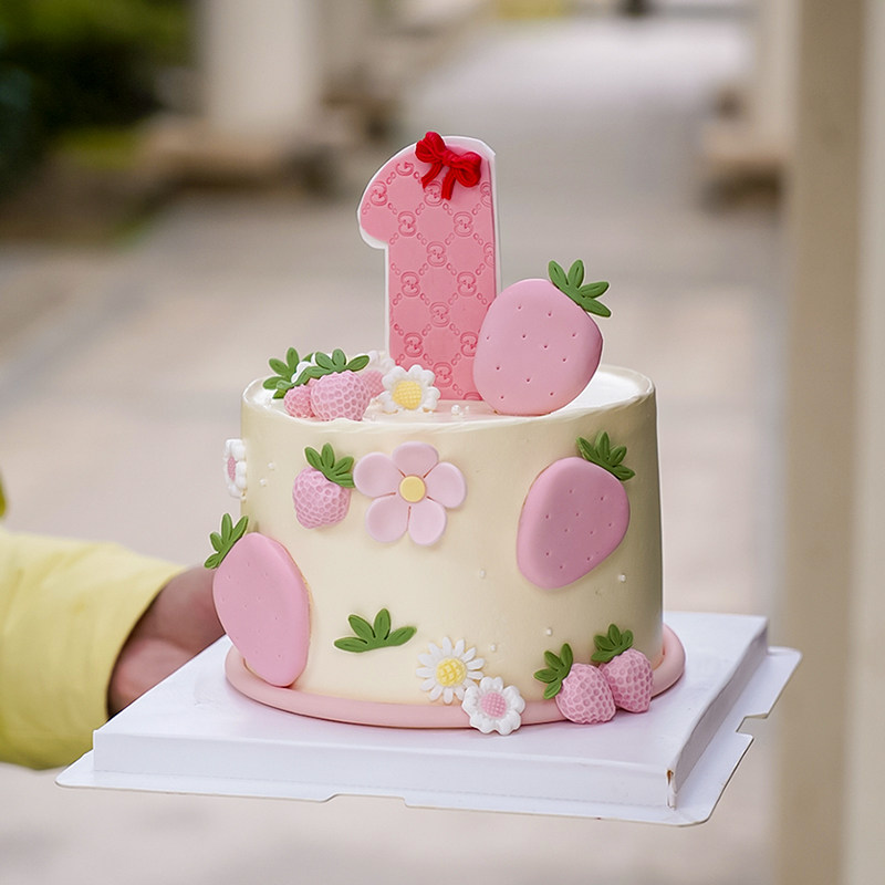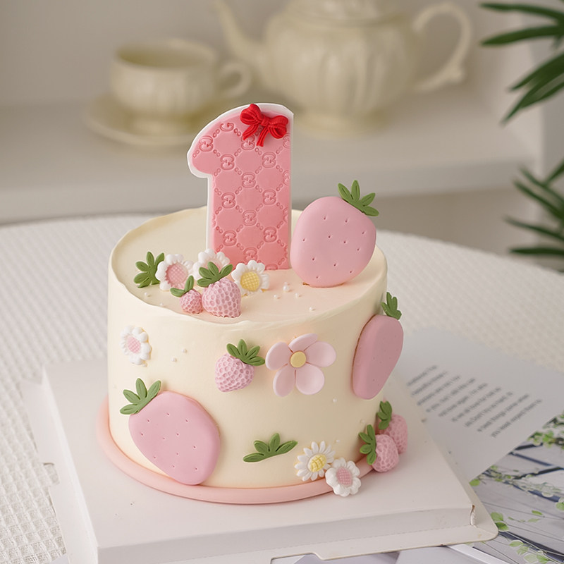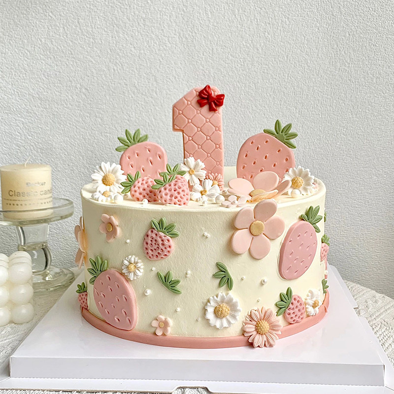 卡通儿童蛋糕装饰翻糖草莓花朵摆件宝宝周岁生日派对装扮烘焙模具