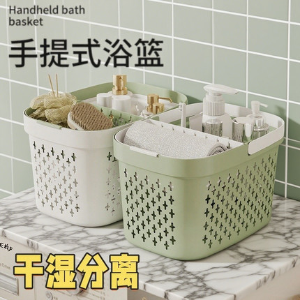居家家洗澡提篮干湿分离宿舍手提澡堂子塑料篮筐子镂空沥水洗漱筐