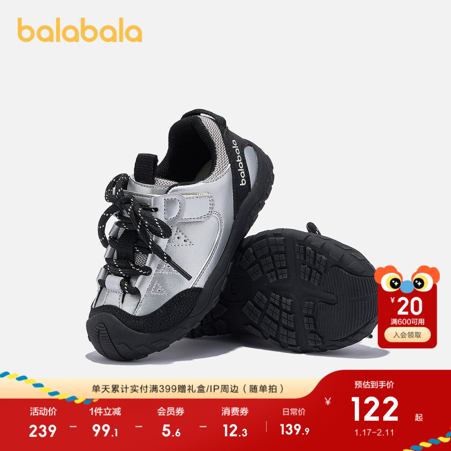 巴拉巴拉童鞋儿童运动鞋男女宝宝鞋子护趾秋冬2025新款户外鞋透气