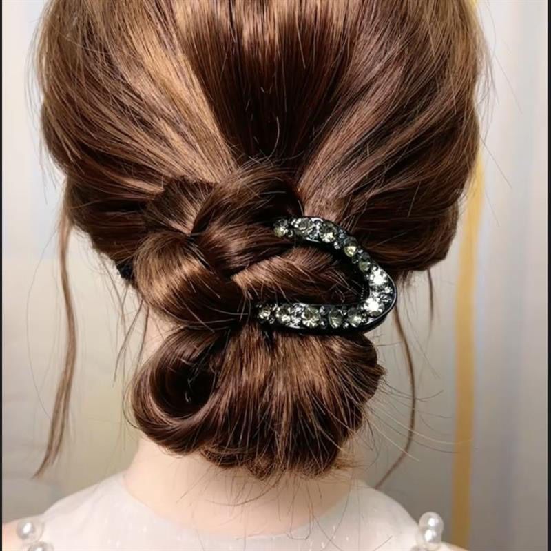 气质水钻高马尾头饰半扎后脑勺发夹网红V型短发过度固定神器抓夹