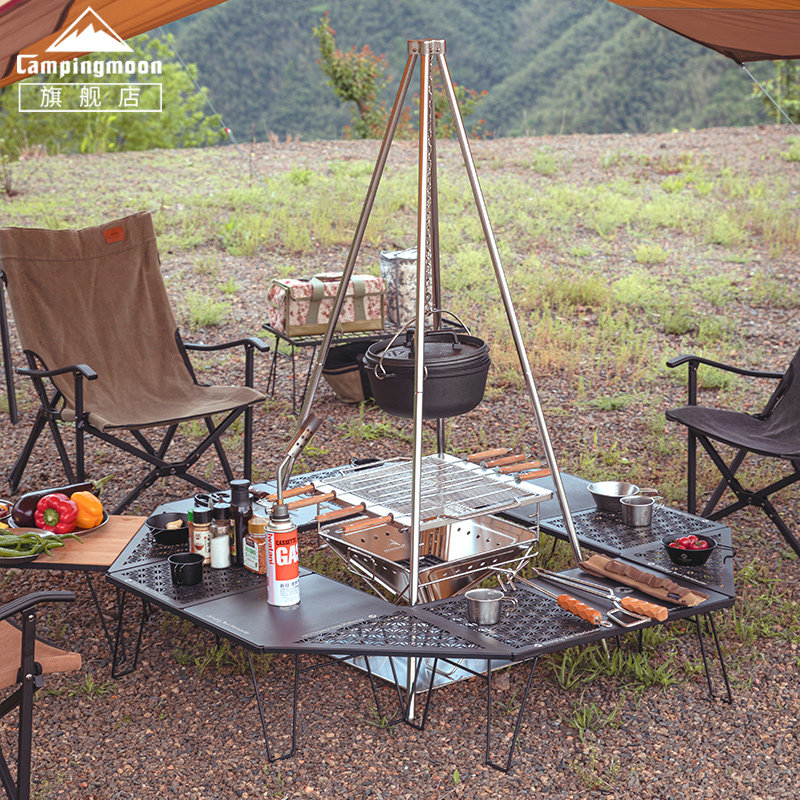 柯曼桌T-230户外简易折叠野餐桌子 多层搭配铁艺置物架可配竹木板