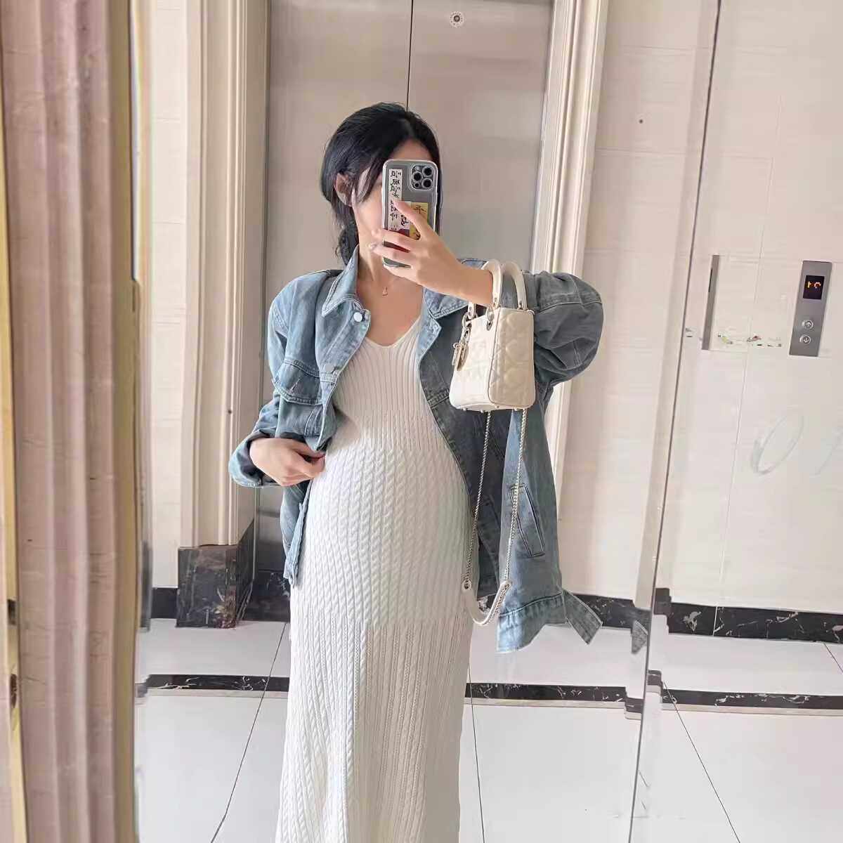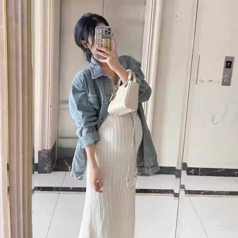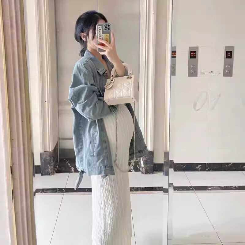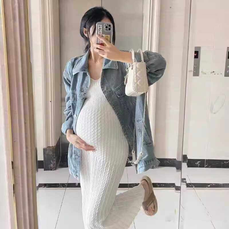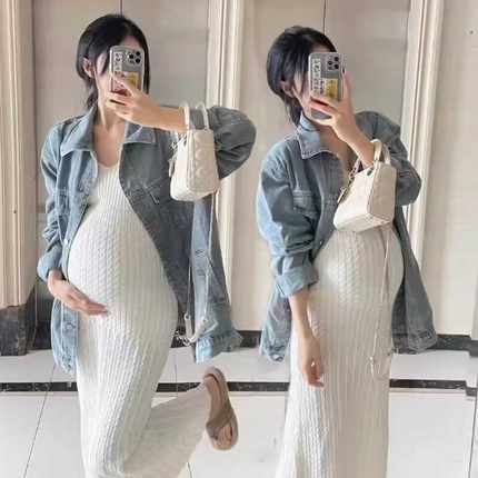 孕妇套装春装2024新款孕期秋季牛仔外套针织吊带连衣裙两件套秋冬