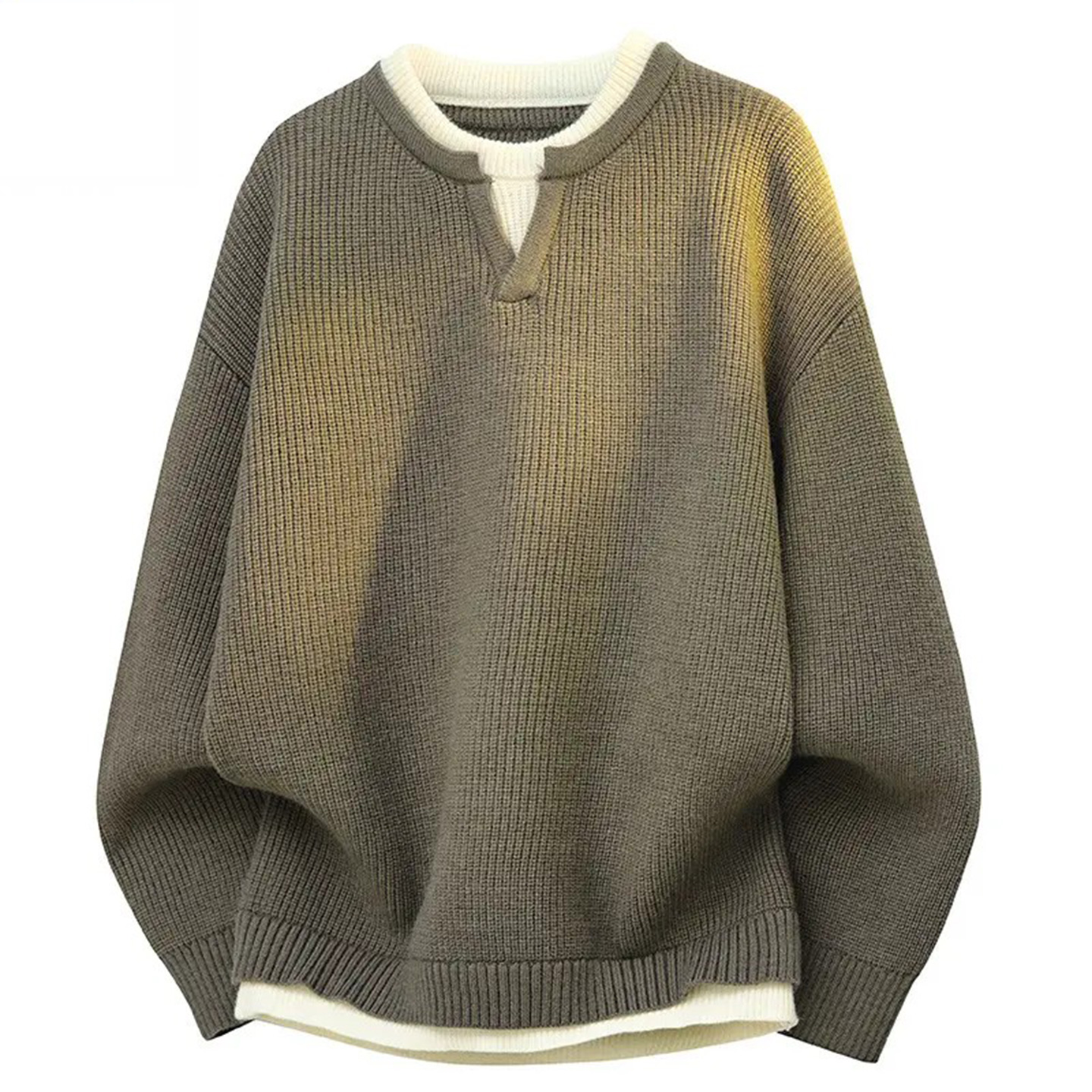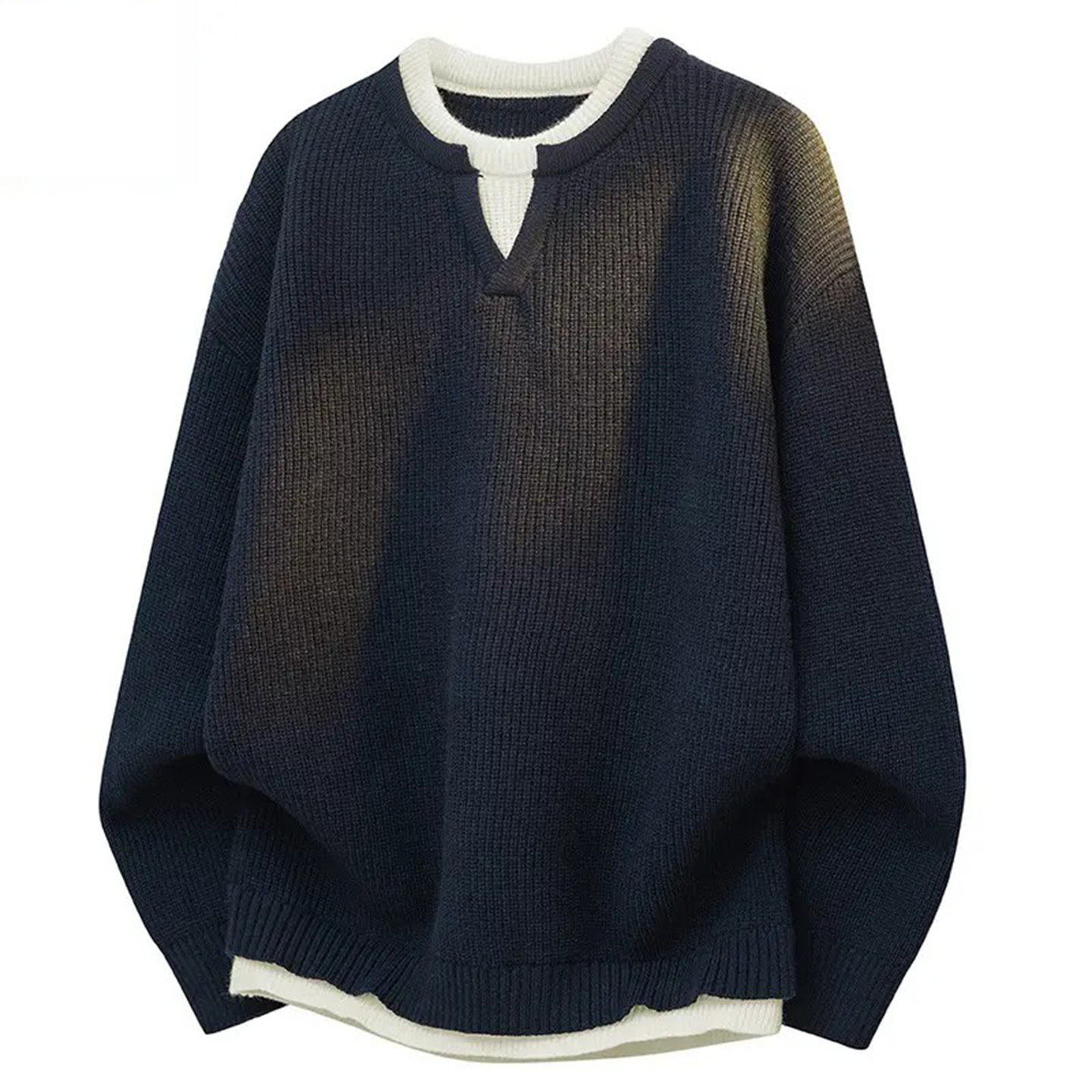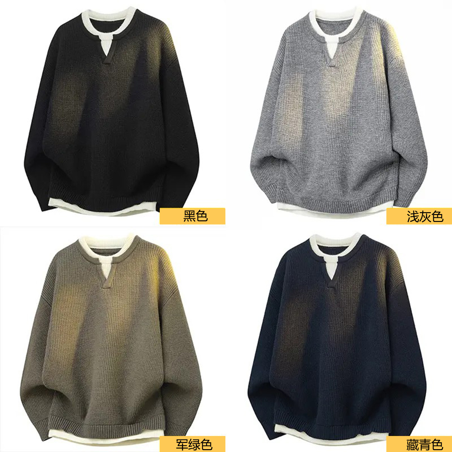 美式通勤假两件圆领毛衣男女同款