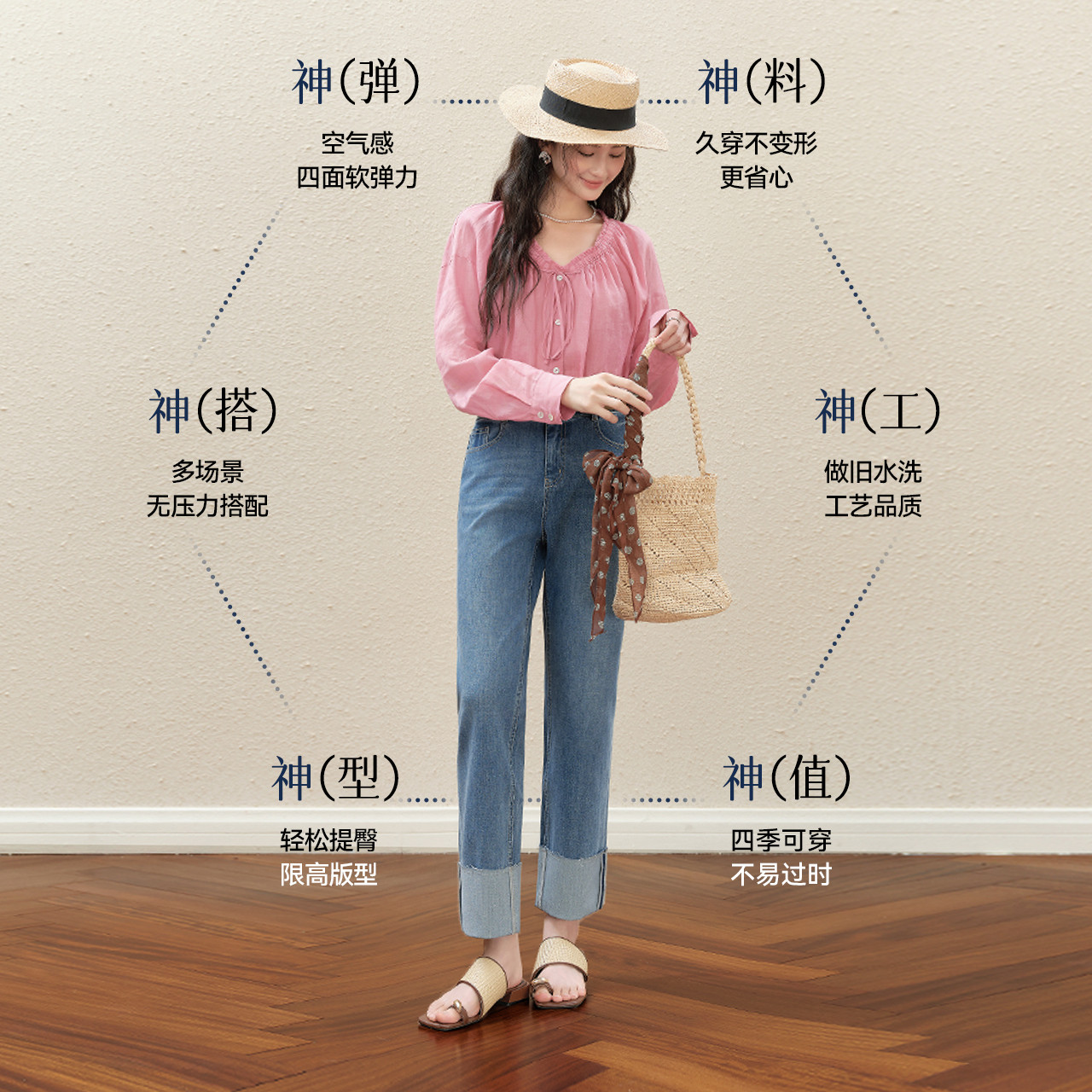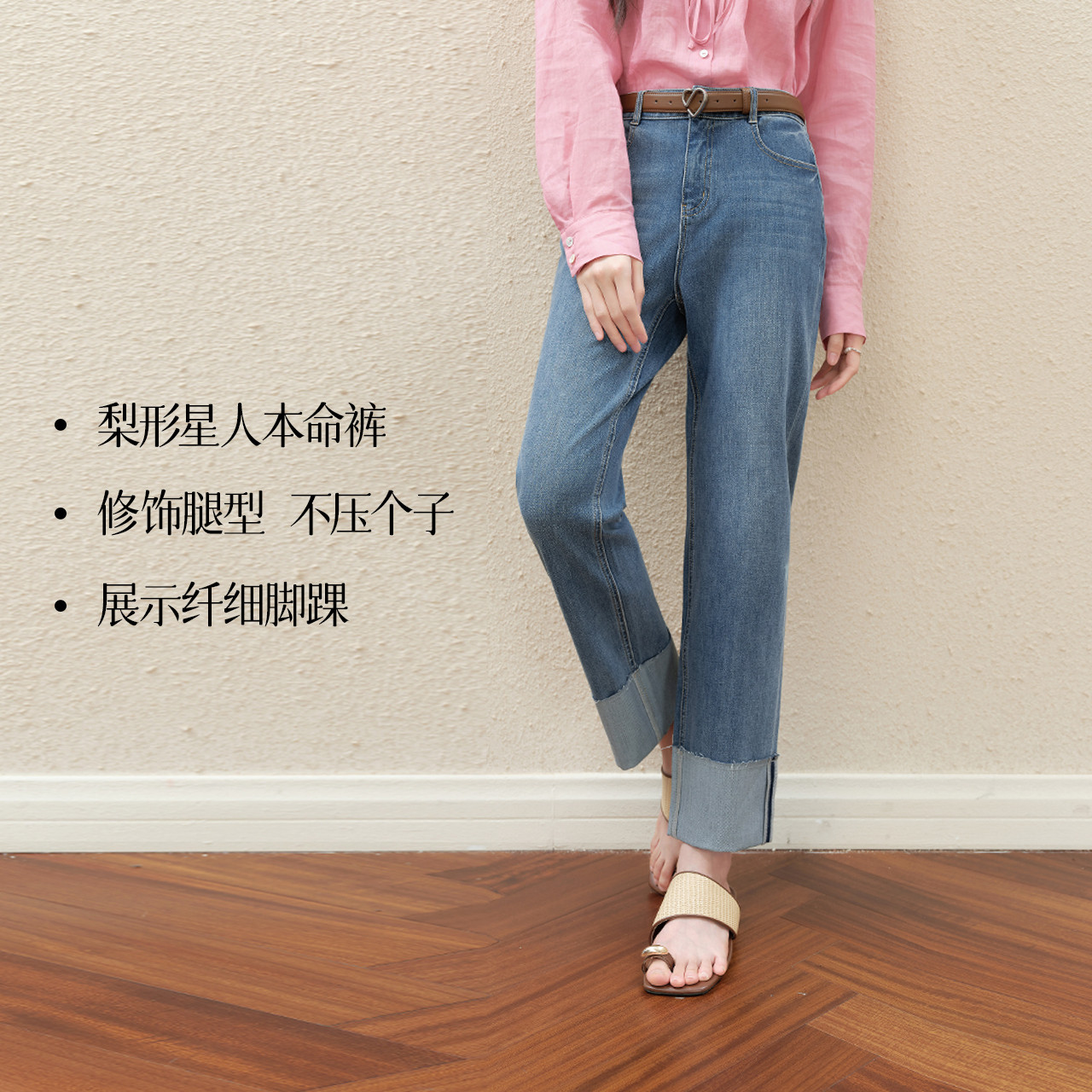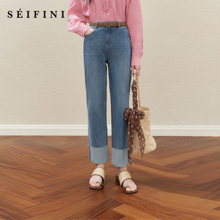 诗凡黎九分翻边直筒牛仔裤25秋高腰窄版薄烟管裤伊芙丽outlets店