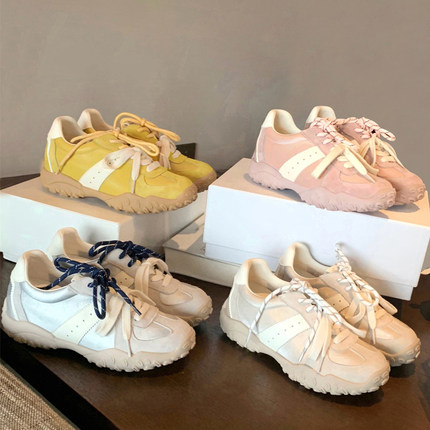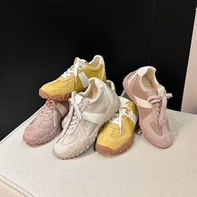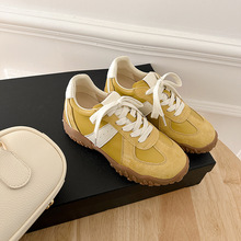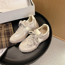 7cm隐形内增高德训鞋女2025春季新款真皮拼色厚底运动休闲阿甘鞋