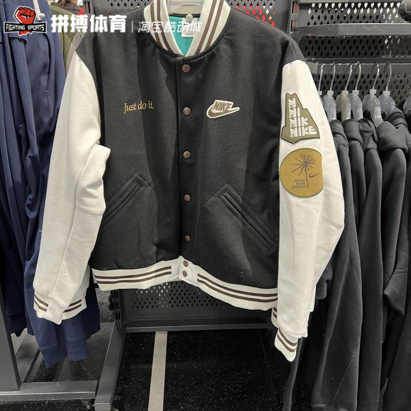 Nike耐克男子运动夹克冬季新款棉服棒球服羊毛混纺外套FV4026