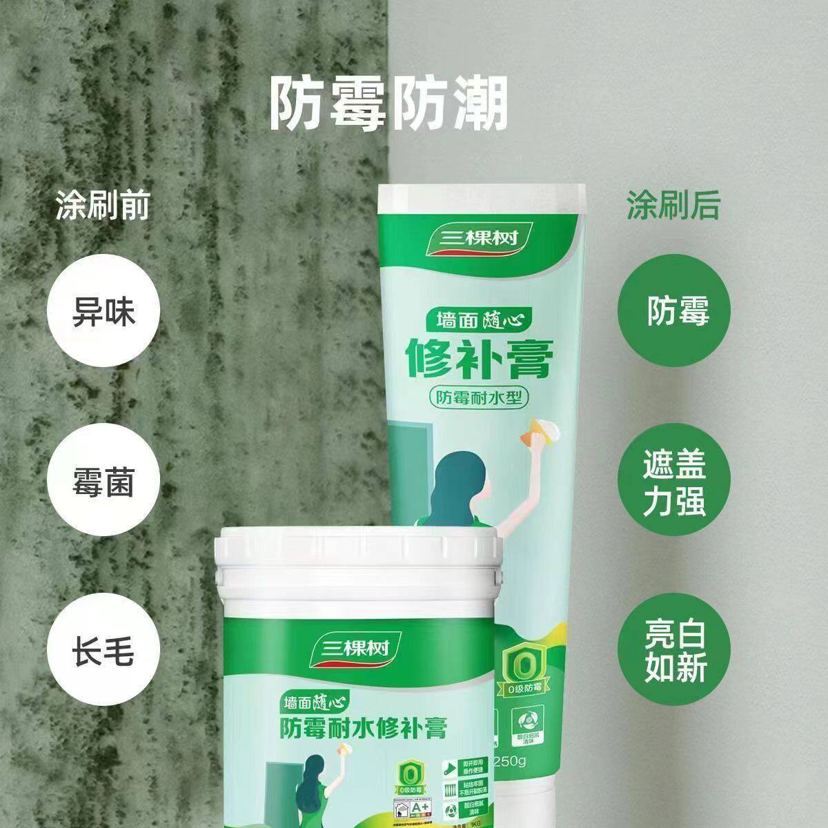 三棵树白色补墙膏家用内墙掉皮开裂腻子膏防水防霉修补膏净味免漆